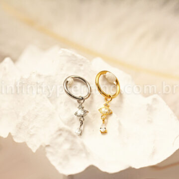 Piercing Argola Titânio Pingente Olho Com Zircônia Cravejada