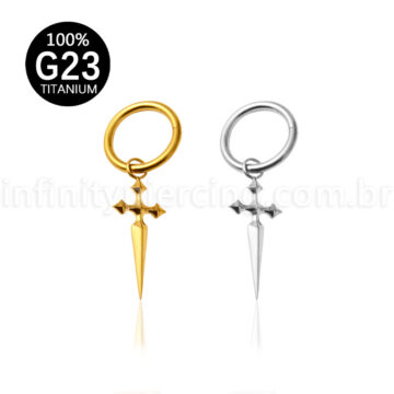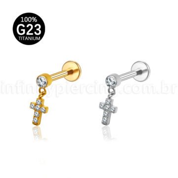 Piercing Labret Titânio Pingente Cruz Cravejada