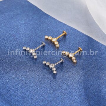 Piercing Labret Invertido Aço Cirúrgico Indiano 3 Zircônia
