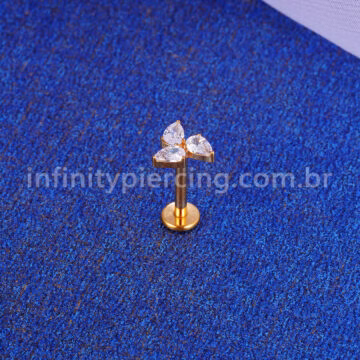 Piercing Labret Titânio Curvo 4 Pedras Zircônia Cravejada