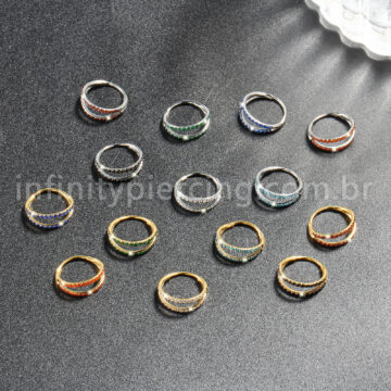 Piercing Argola Segmentada Titânio 2 Fileiras Zircônia Cravejada