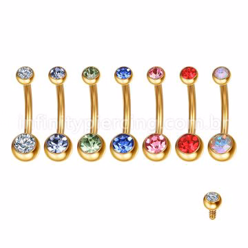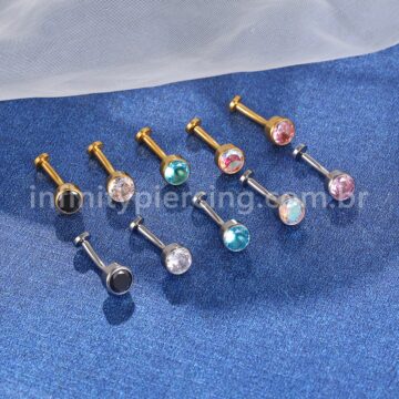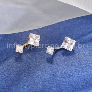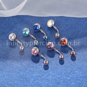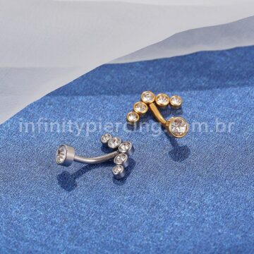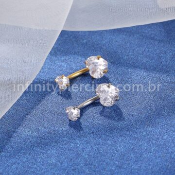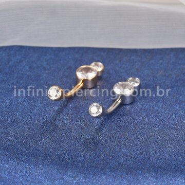 Piercing Banana Aço Cirúrgico 2 Pedras Strass Redonda