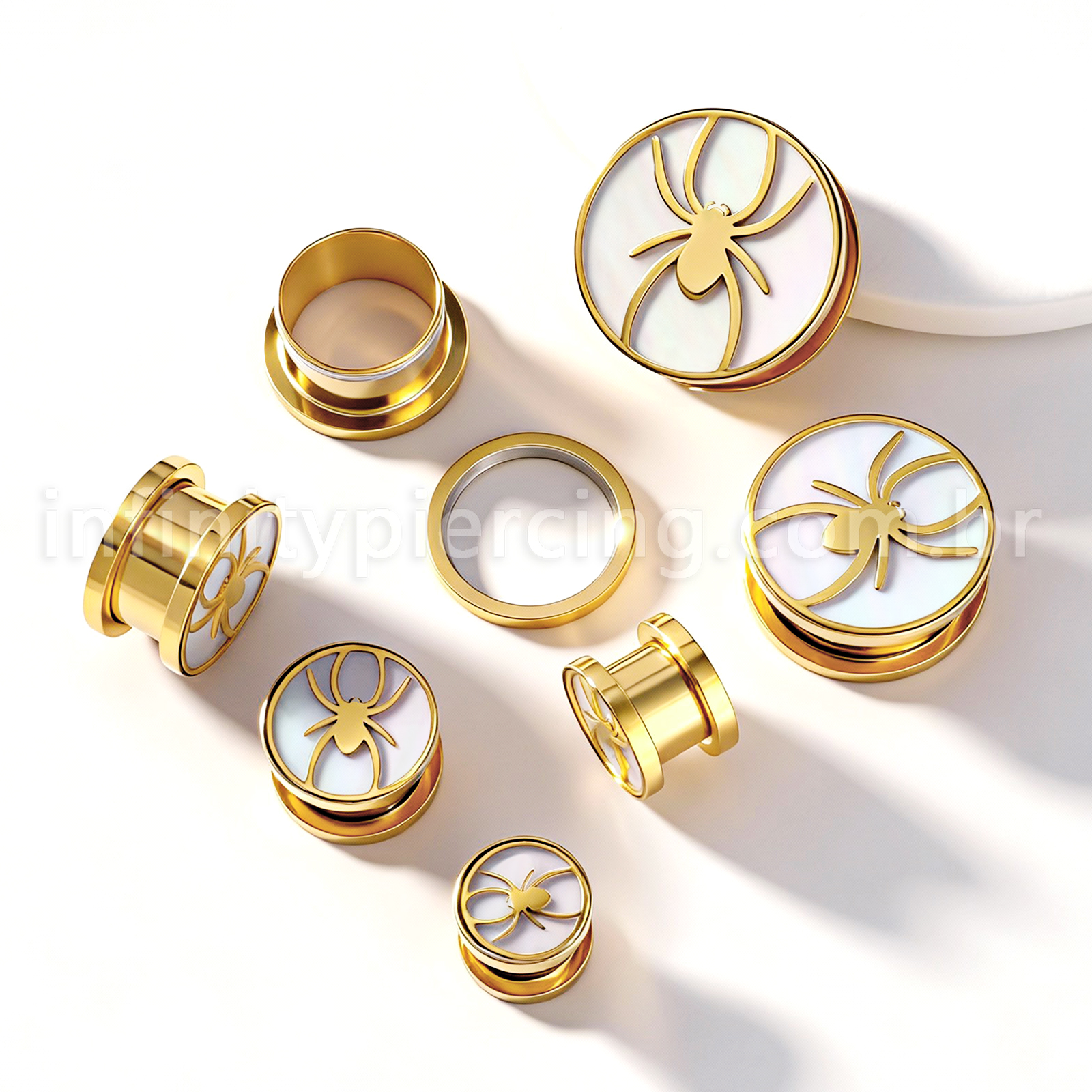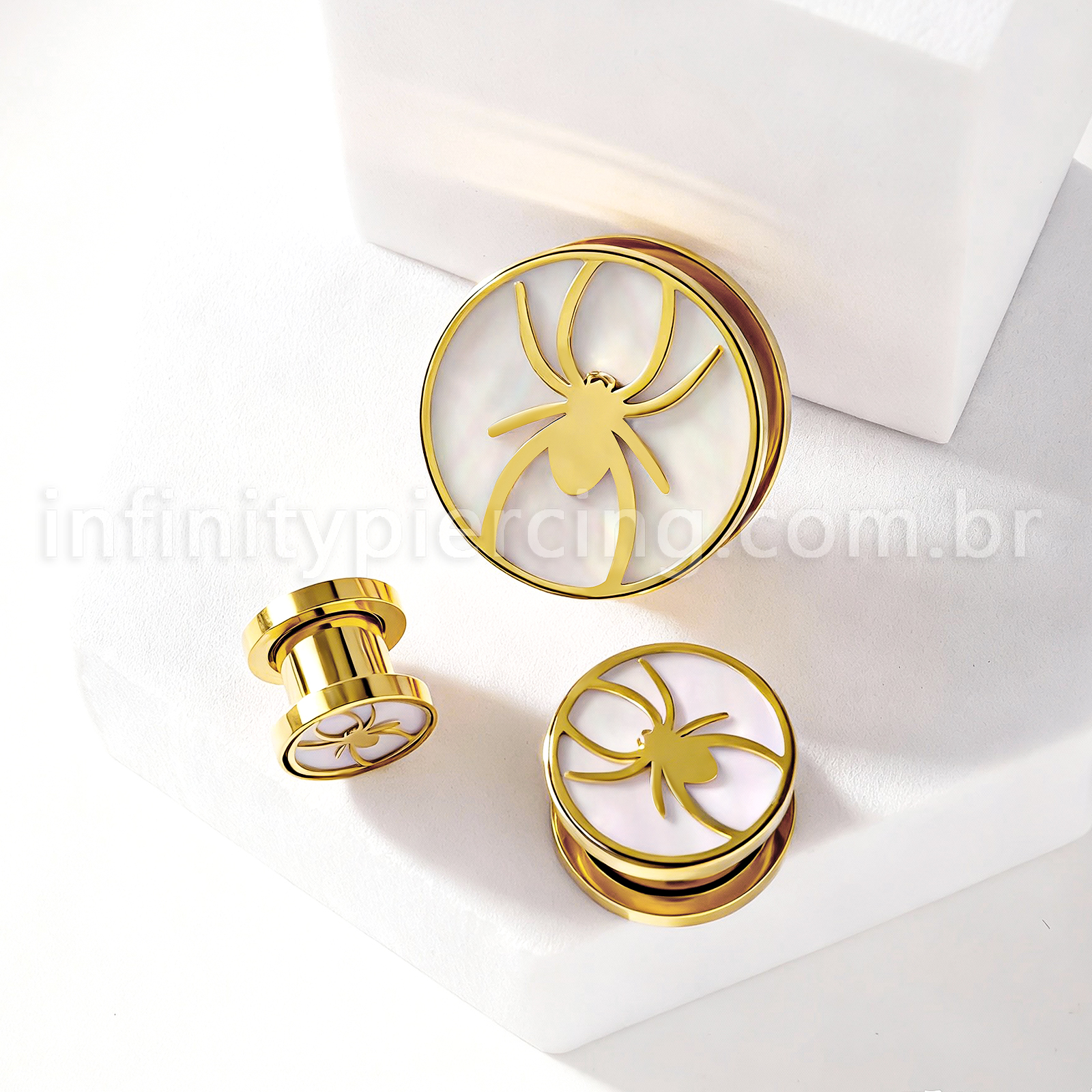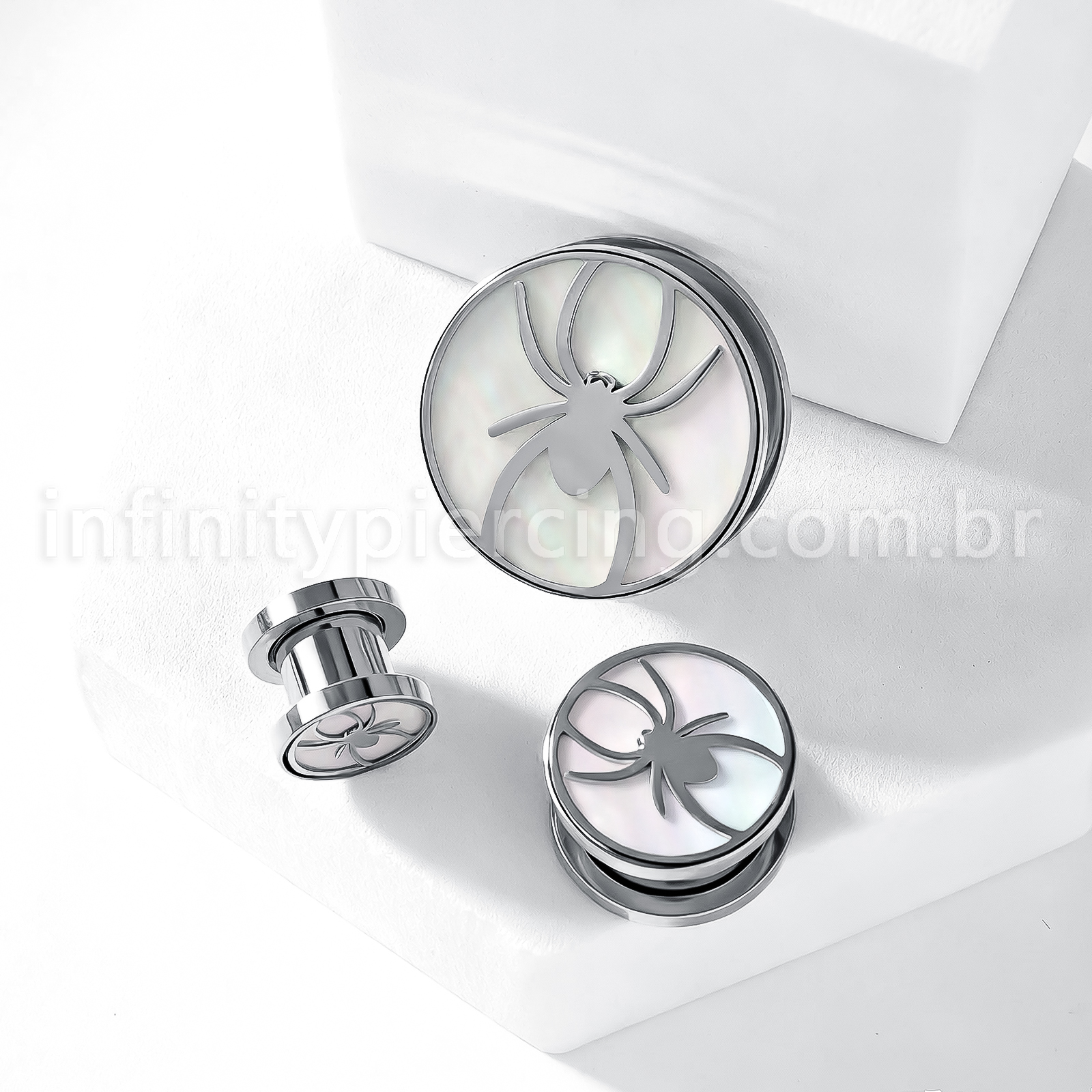 Alargador Aço Cirúrgico Com Madre Perola / Aranha - Infinity Piercing