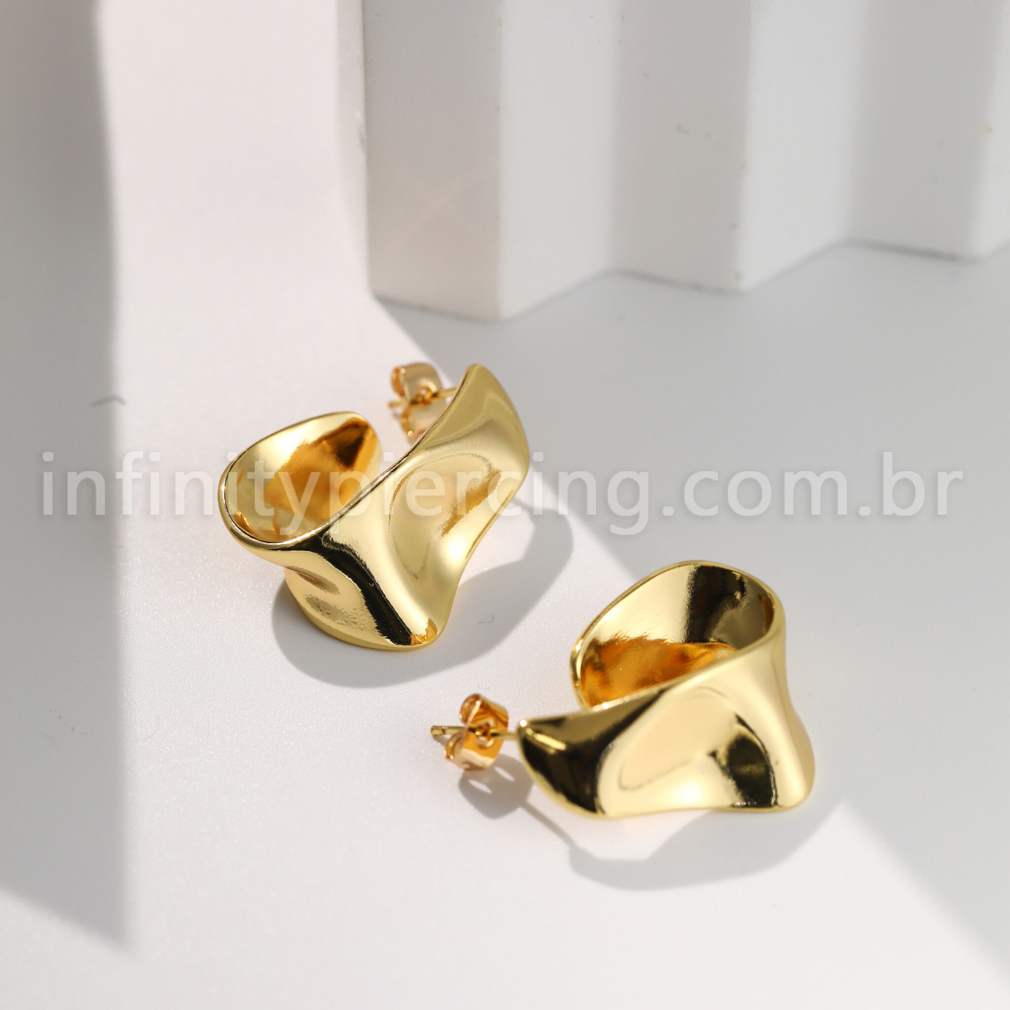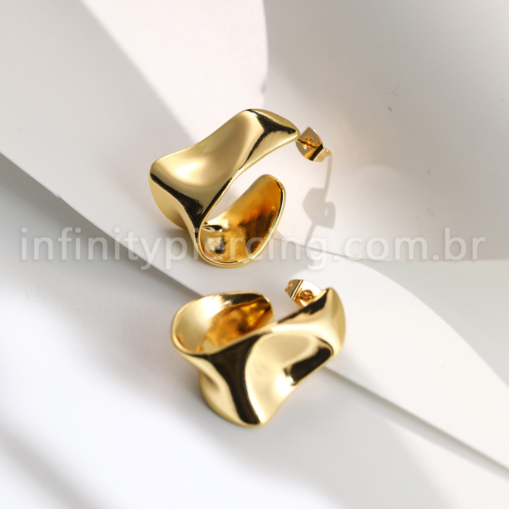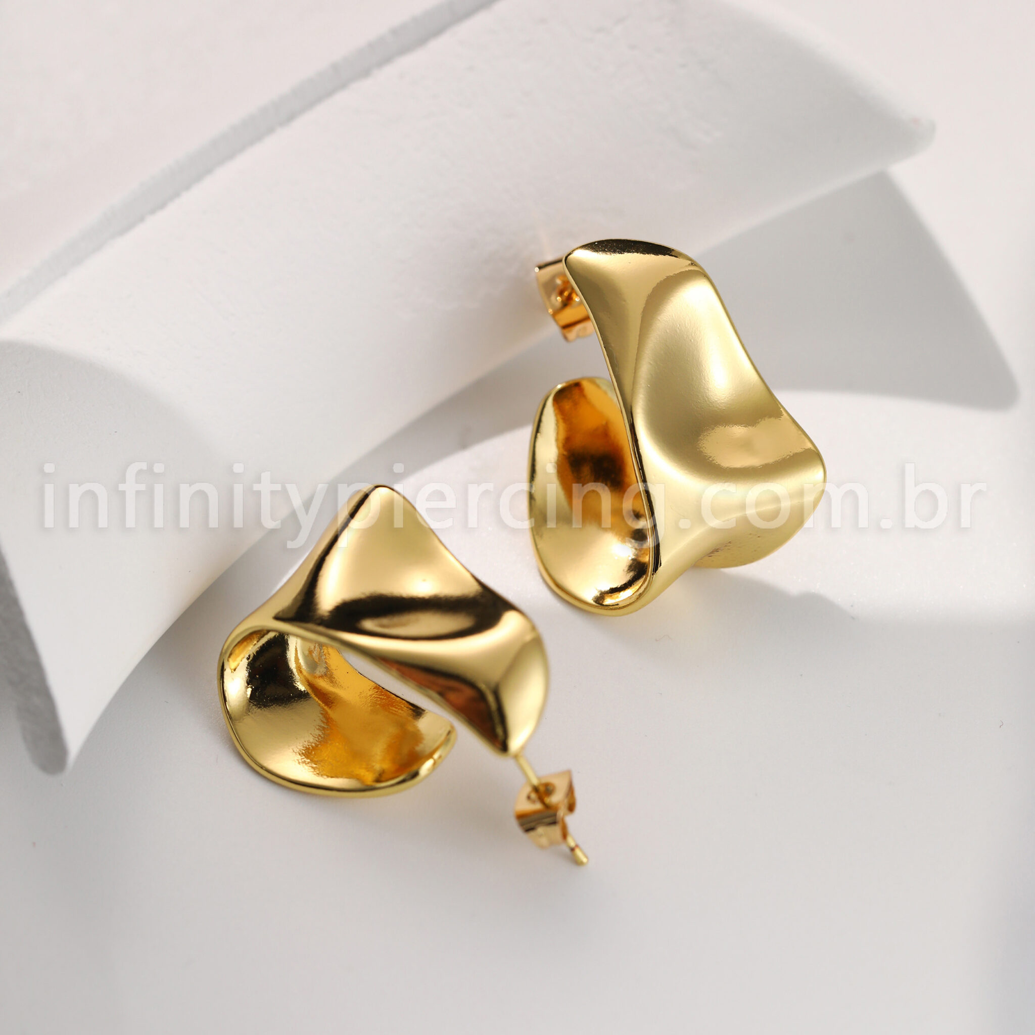 Brinco Folheado A Ouro 18K Oval Ondulado - Infinity Piercing