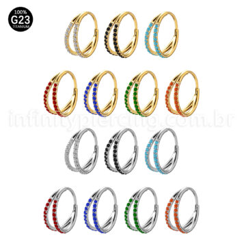 Piercing Argola Segmentada Titânio 2 Fileiras Zircônia Cravejada Faça login para ver os preços