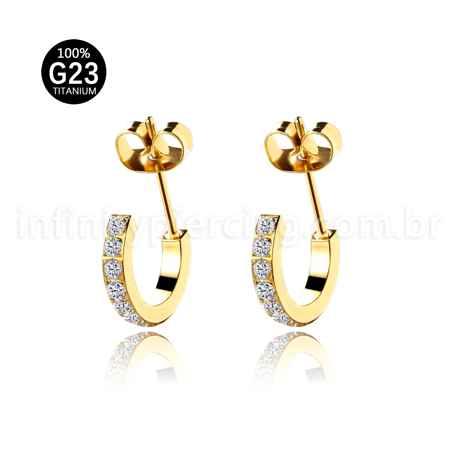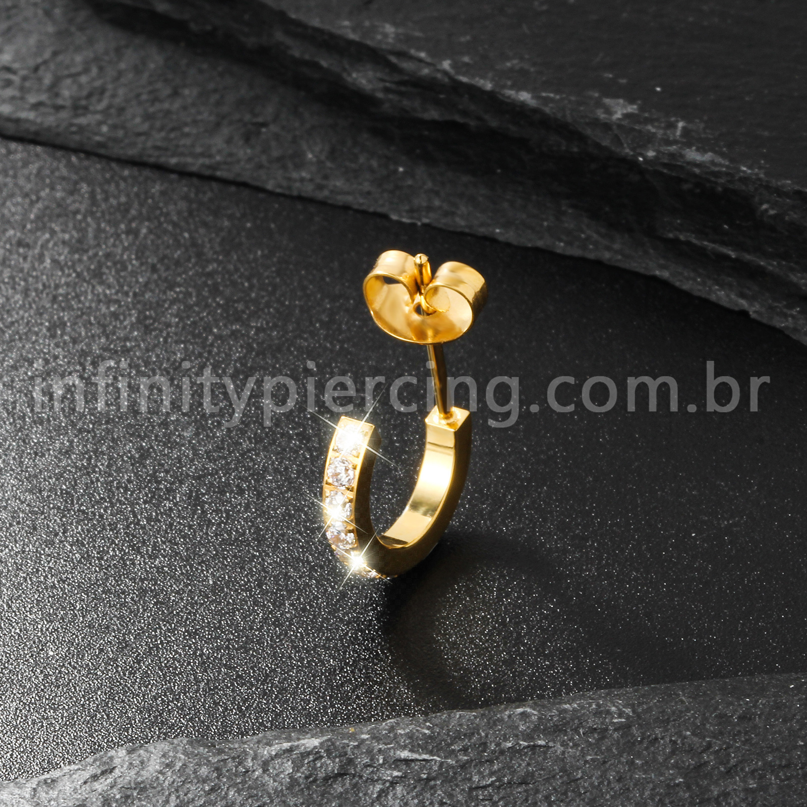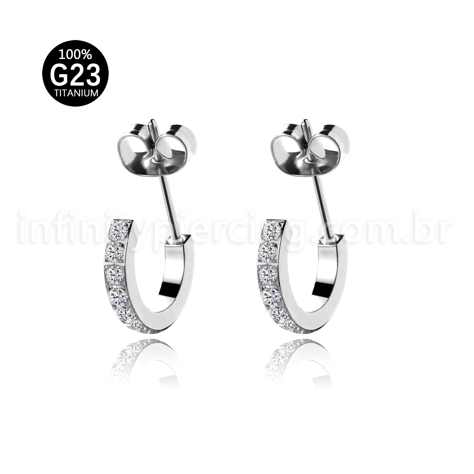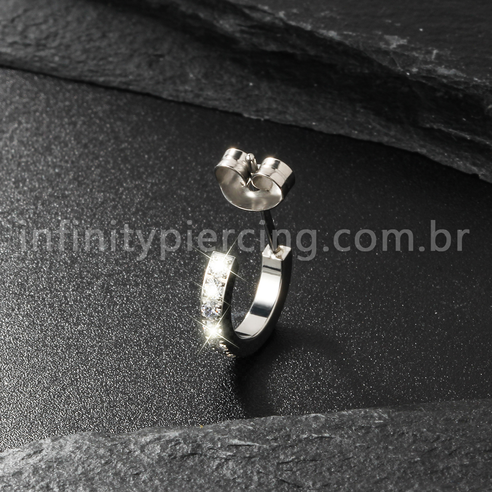 Brinco Titânio Argolinha Com Zircônia Cravejada - Infinity Piercing