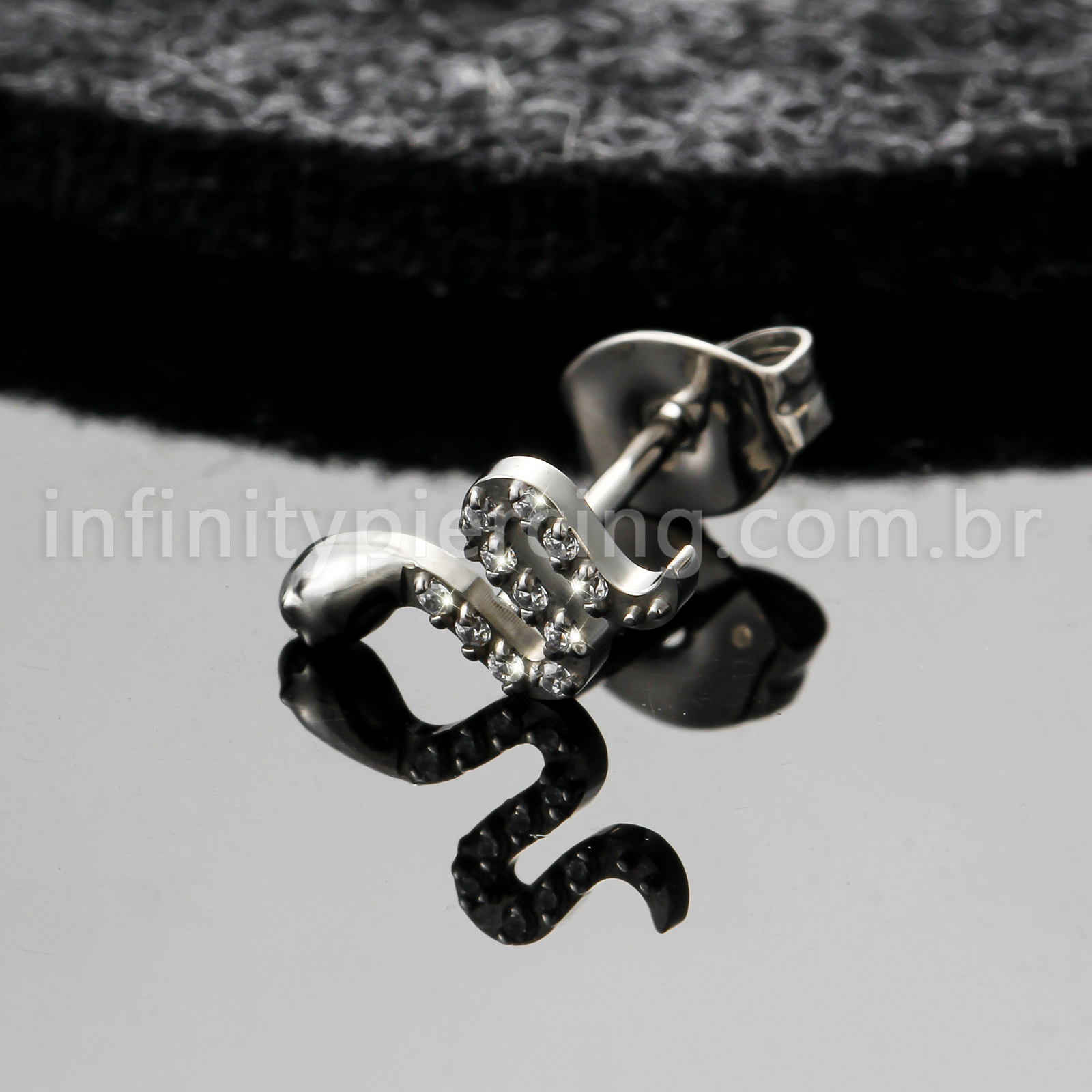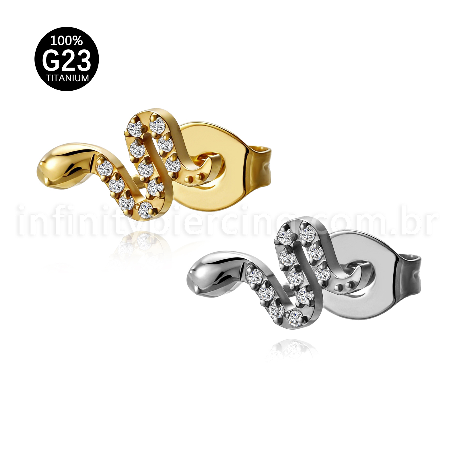 Brinco Titânio Cobra Zircônia Cravejada - Infinity Piercing
