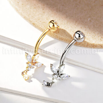 Piercing Banana Titânio Meia Flor Zircônia Cravejada