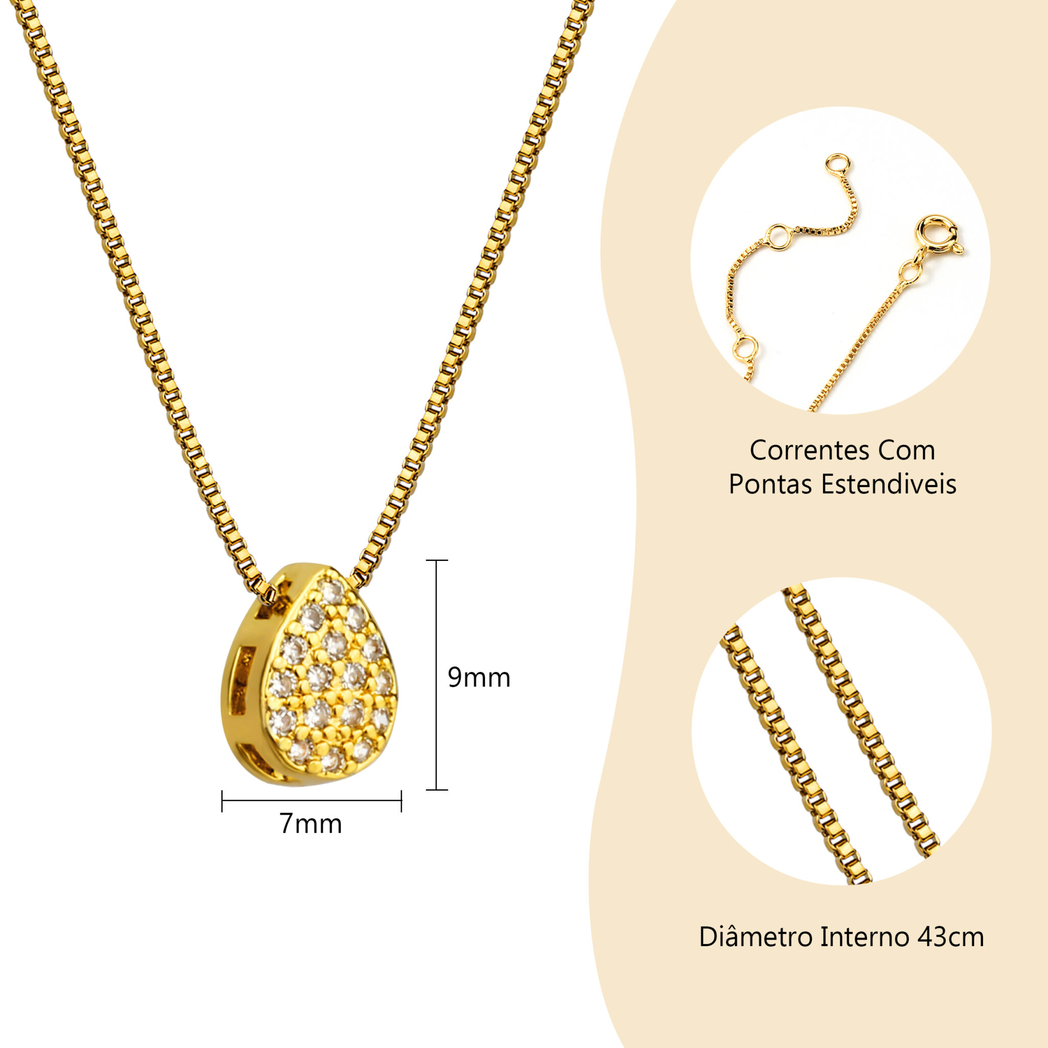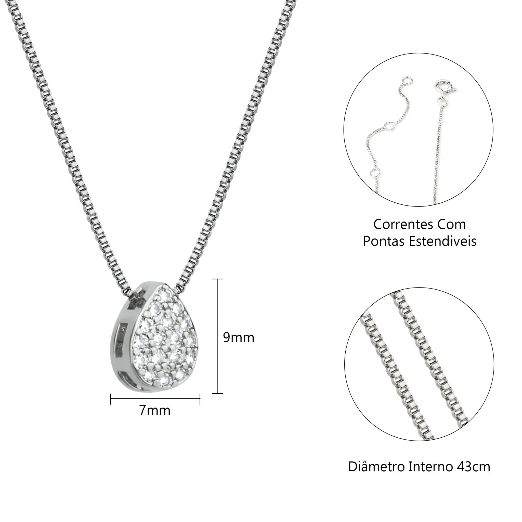 Colar Gota Folheado Platina Zircônia - Infinity Piercing