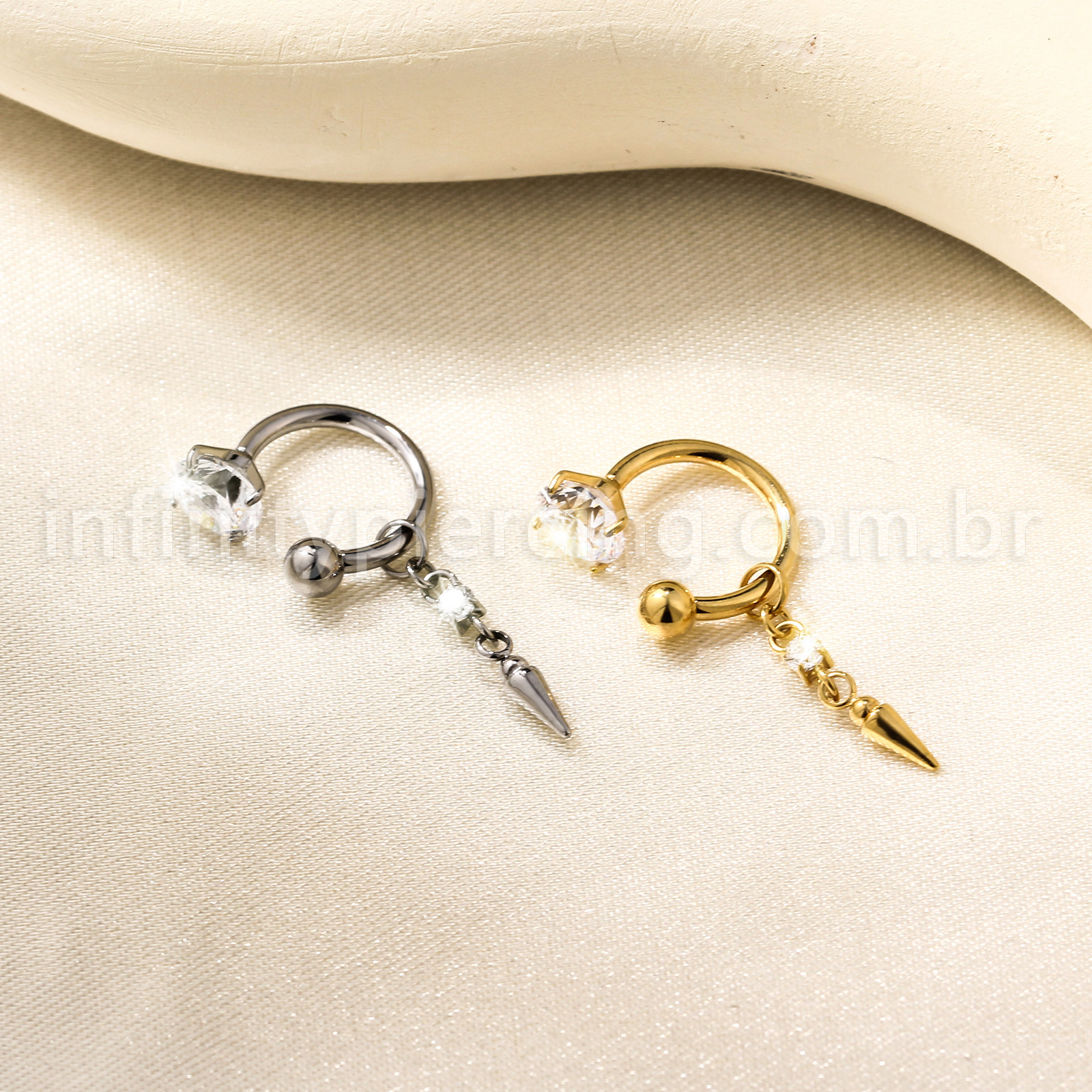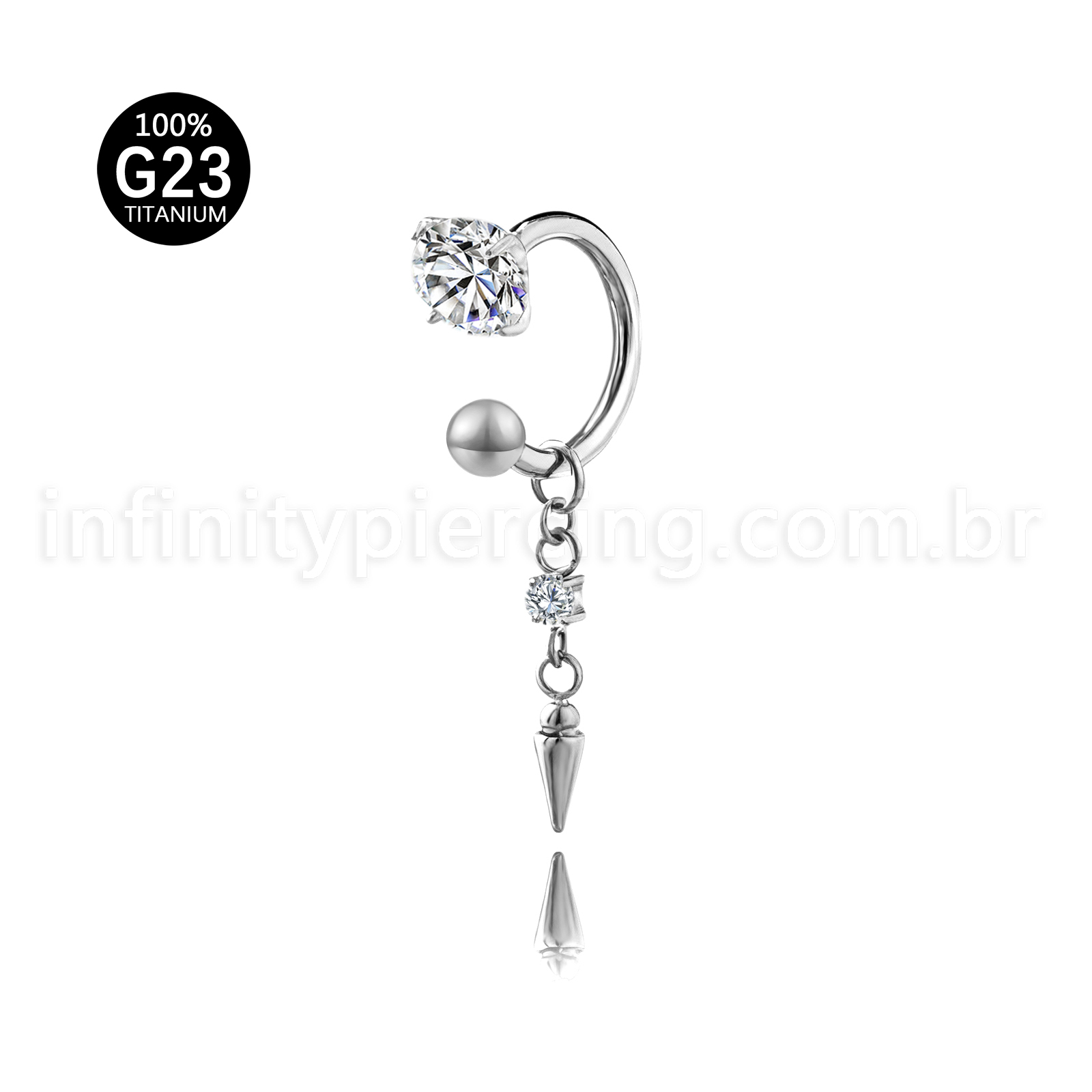 Ferradura Titânio Zircônia cravejada Com Pingente Spike - Infinity Piercing