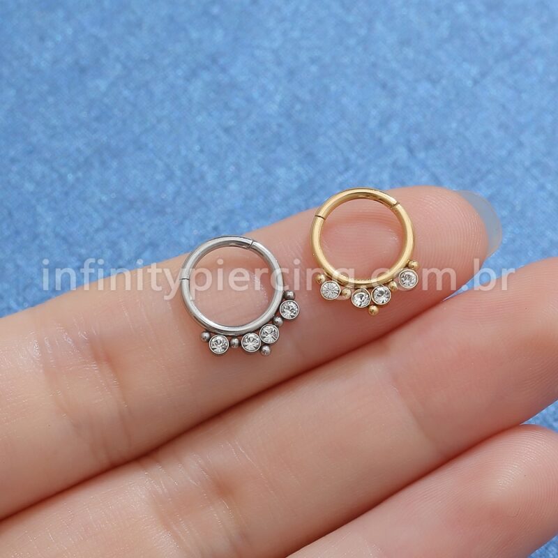 Piercing Argola Aço Cirúrgico Segmento Articulado Indiano Strass - Infinity Piercing