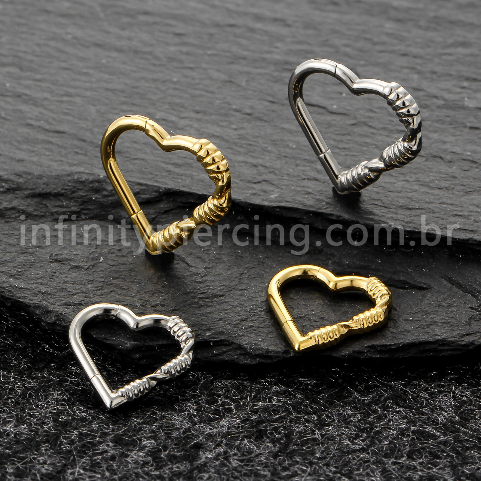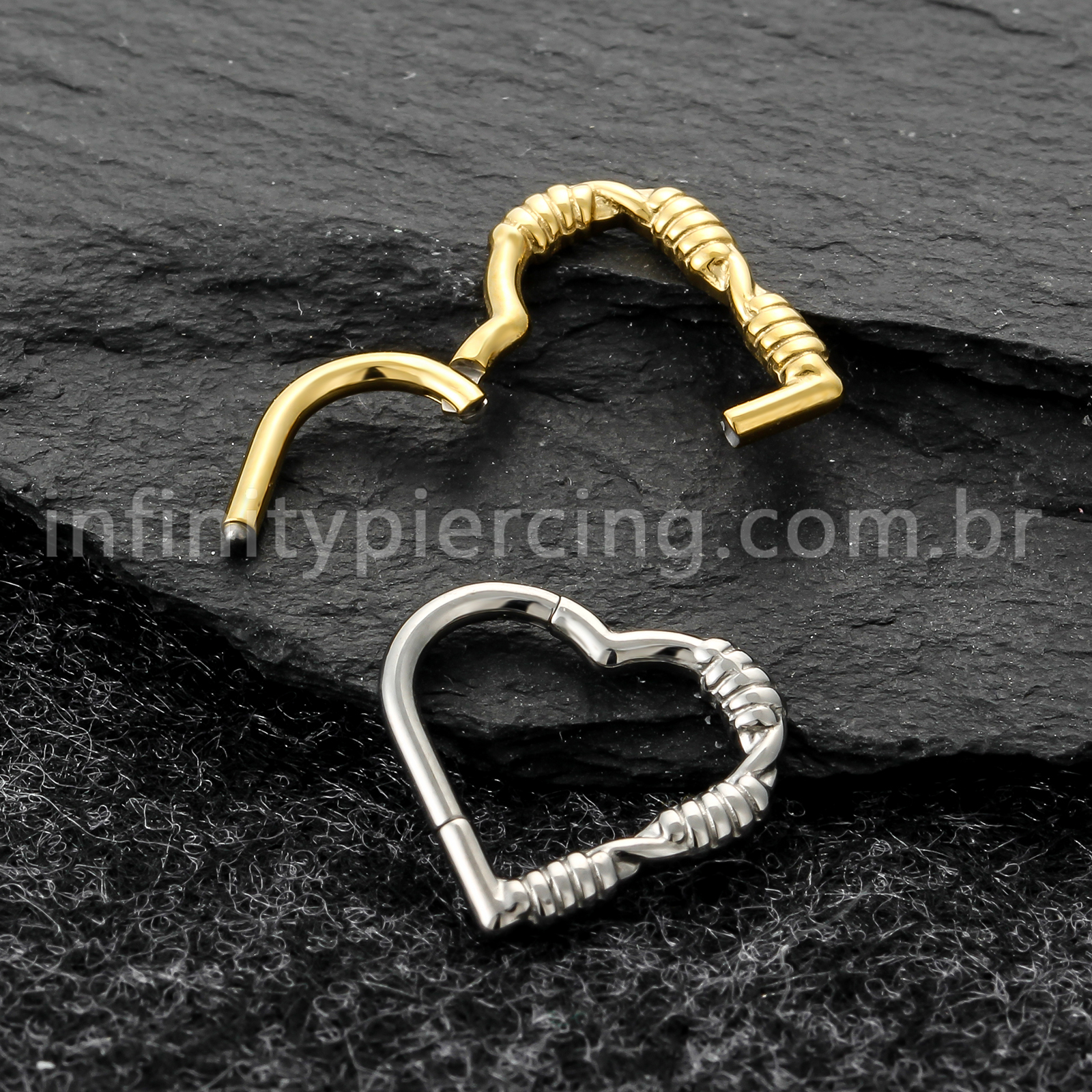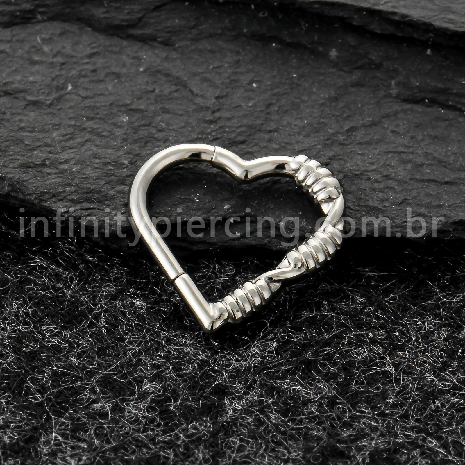 Piercing Argola Coração Titânio Com Detalhes Arame - Infinity Piercing