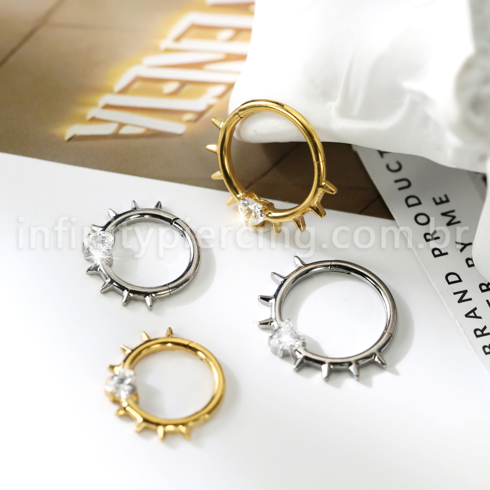 Piercing Argola Titânio Spike Com Pedra Zircônia - Infinity Piercing