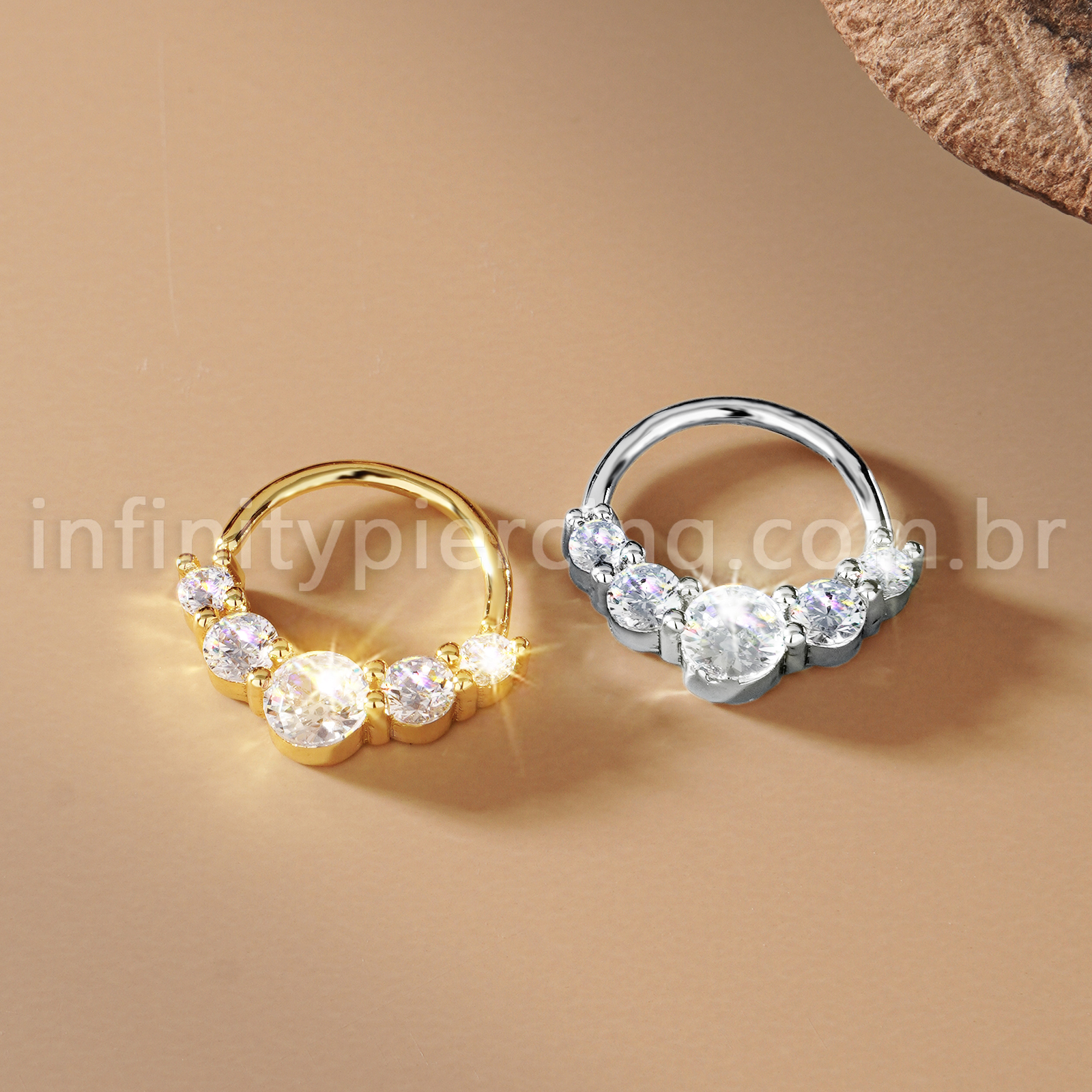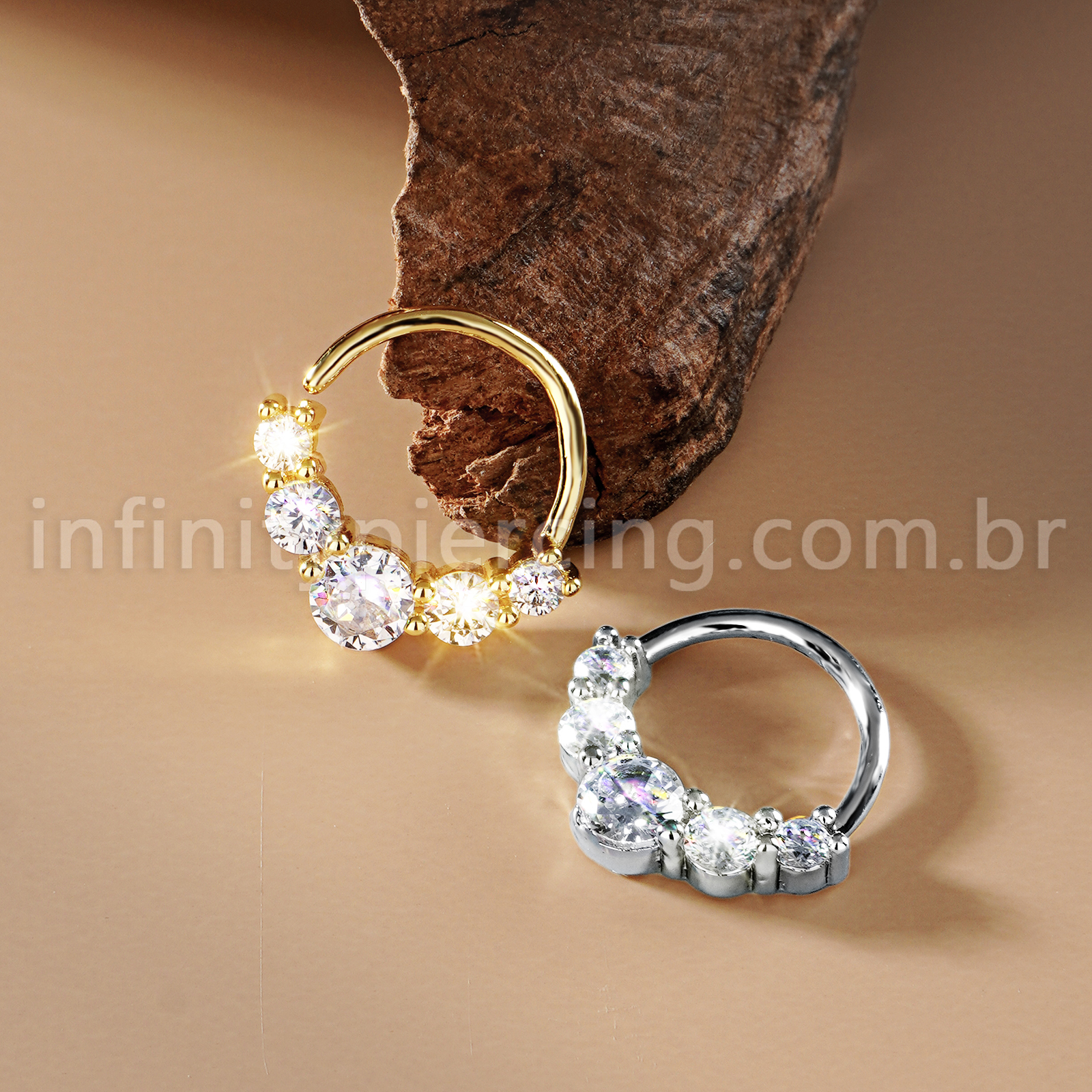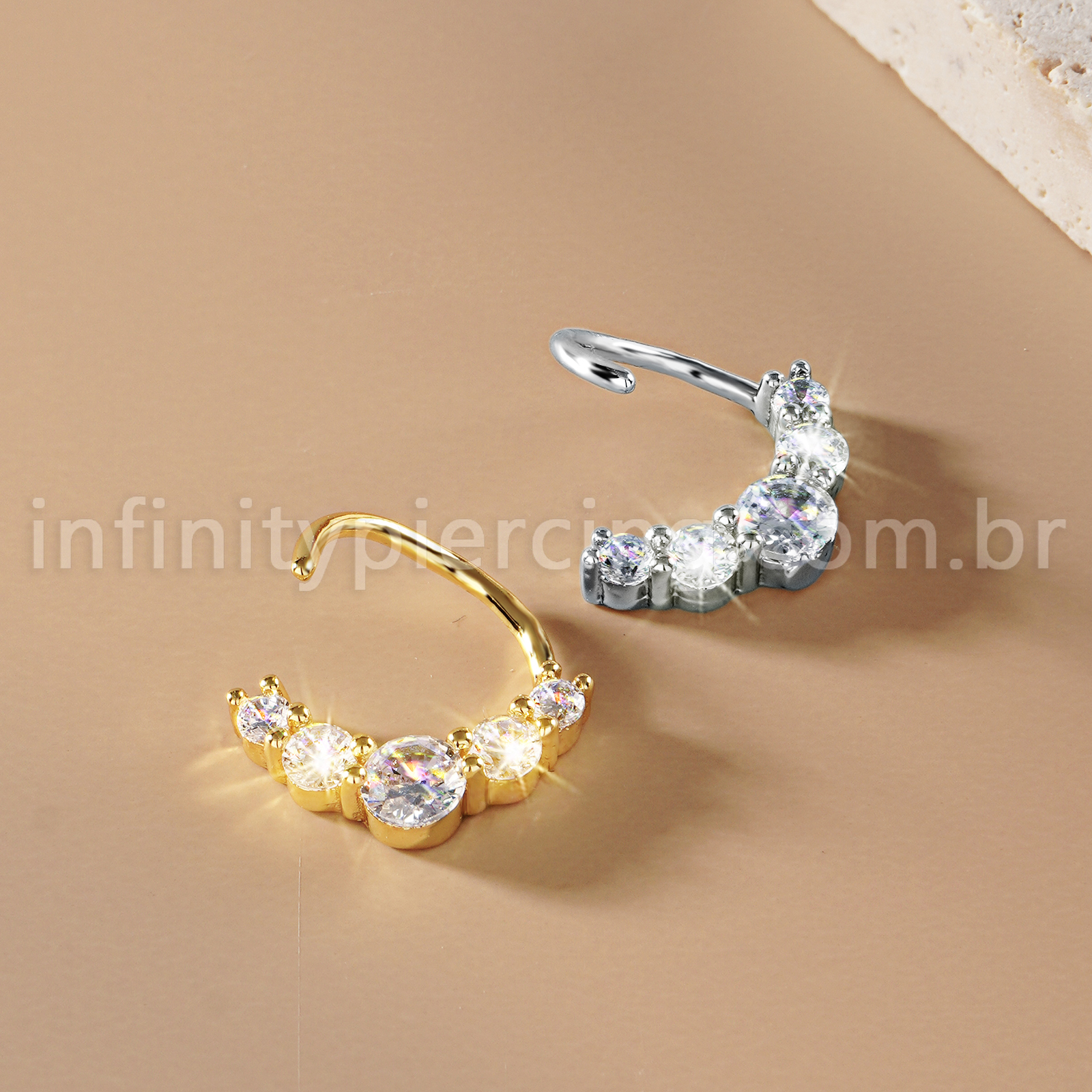 Piercing Argola Torção Cobre 5 Pedras Zircônia Cravejada - Infinity Piercing