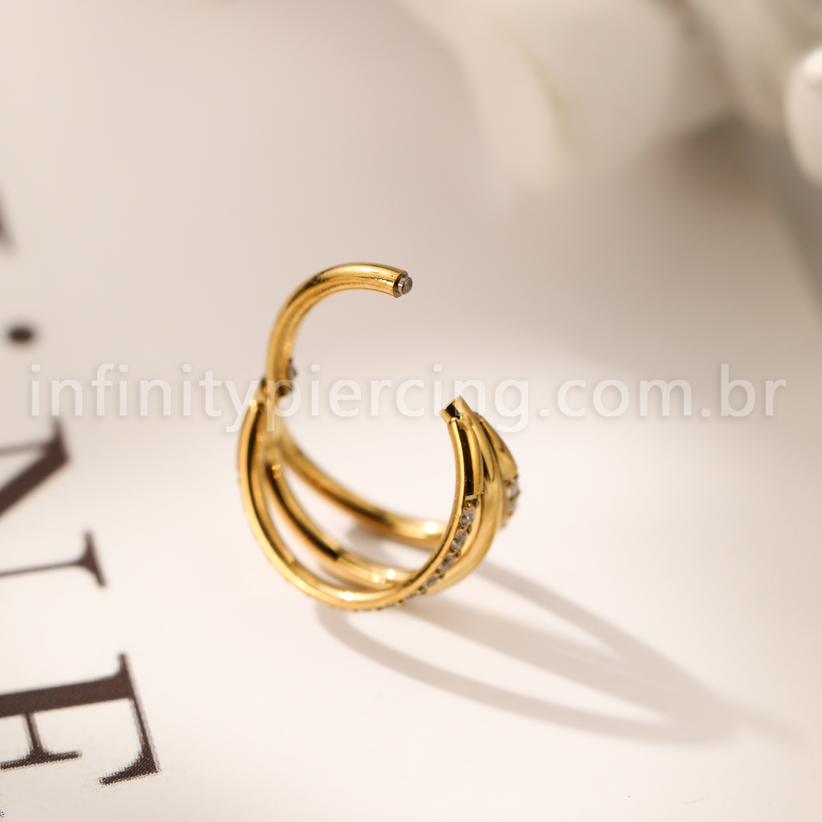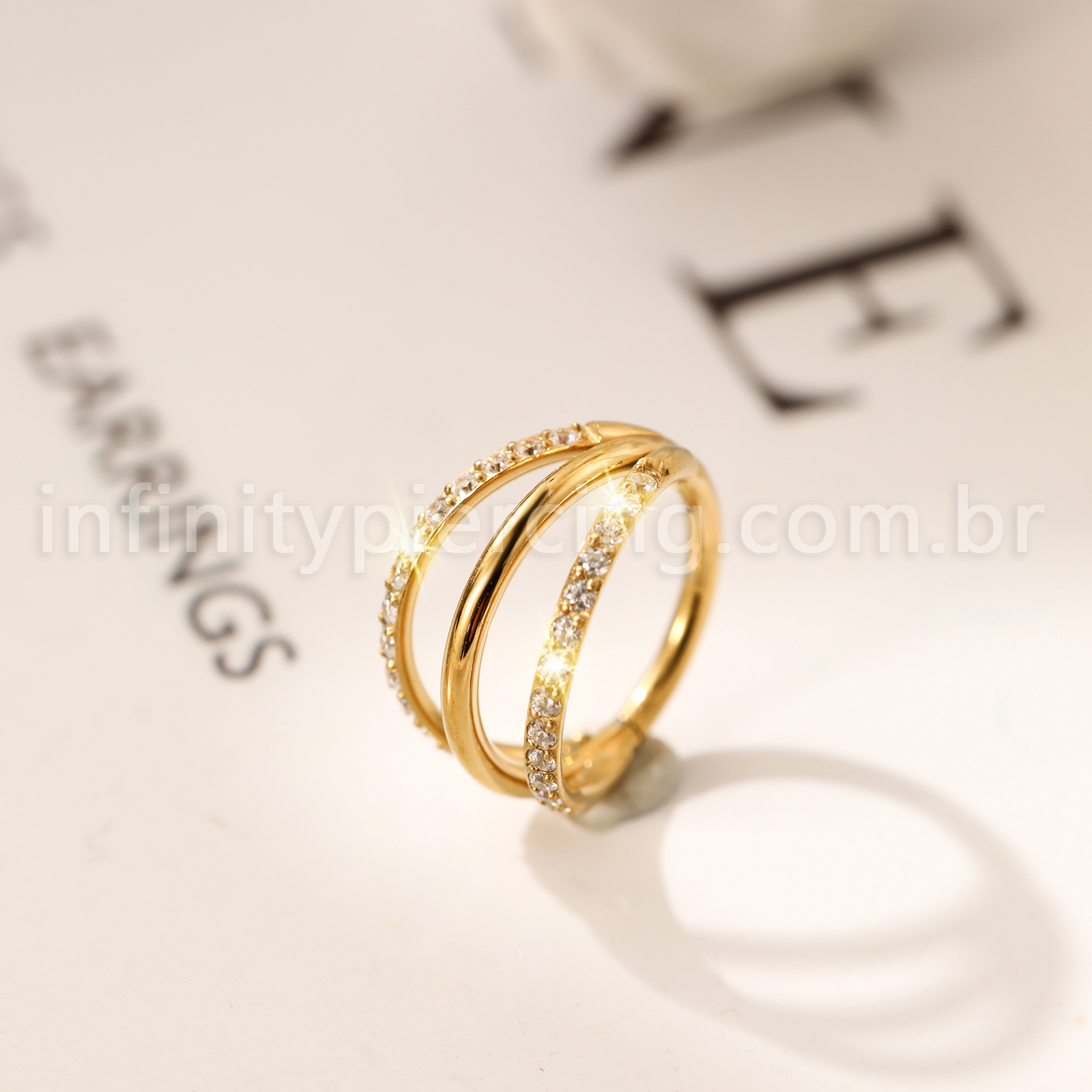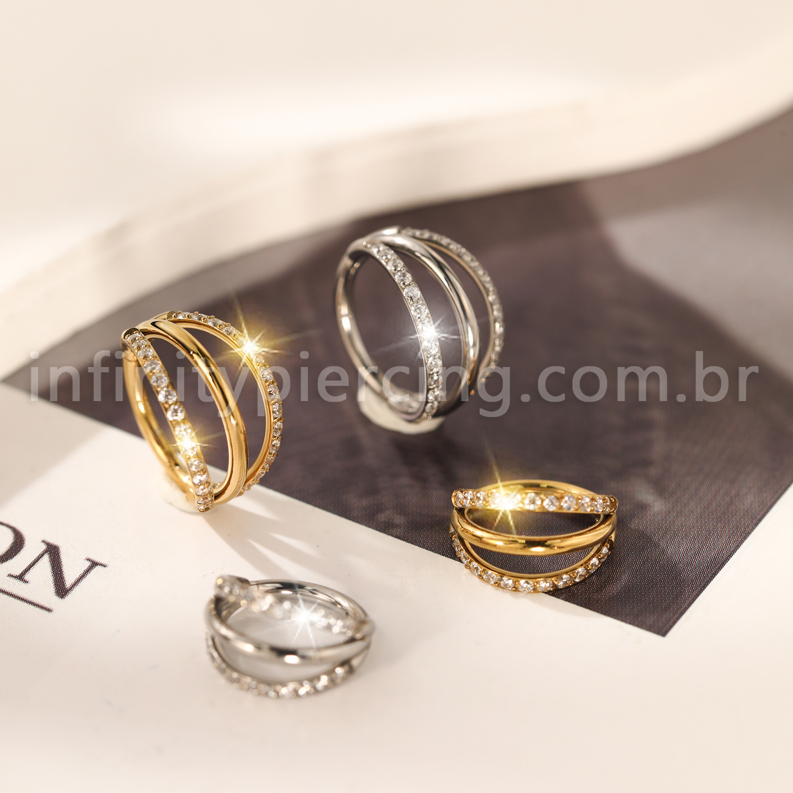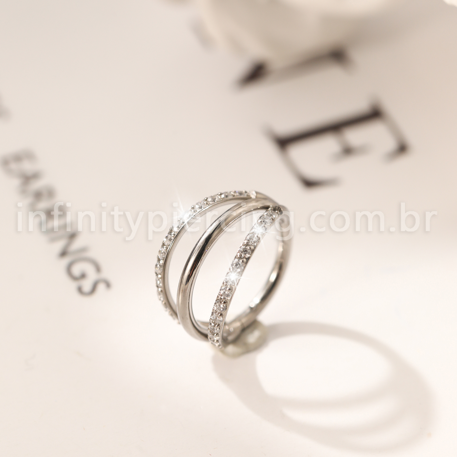 Piercing Argola Três Fileira Titânio Segmento Articulado 2 Fileiras Com Zircônia Cravejada - Infinity Piercing