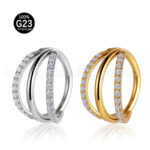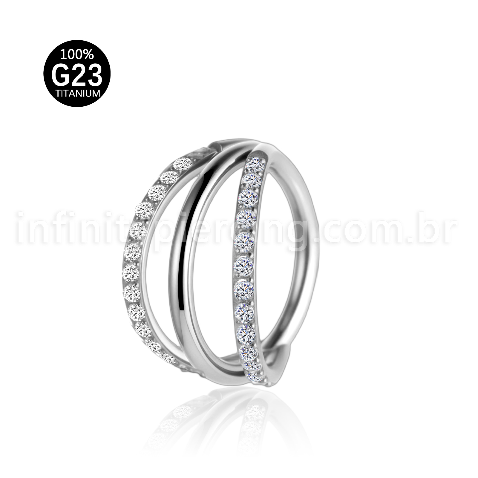 Piercing Argola Três Fileira Titânio Segmento Articulado 2 Fileiras Com Zircônia Cravejada