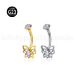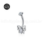 Piercing Banana Titânio Borboleta Zircônia Cravejada
