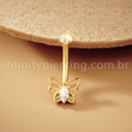 Início Piercing Titânio Banana Piercing Banana Titânio Borboleta Zircônia Cravejada