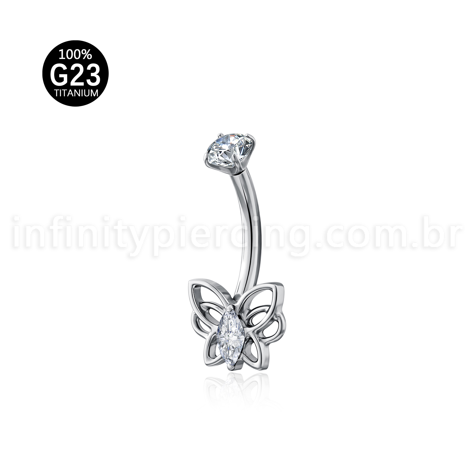 Piercing Banana Titânio Borboleta Zircônia Cravejada - Infinity Piercing