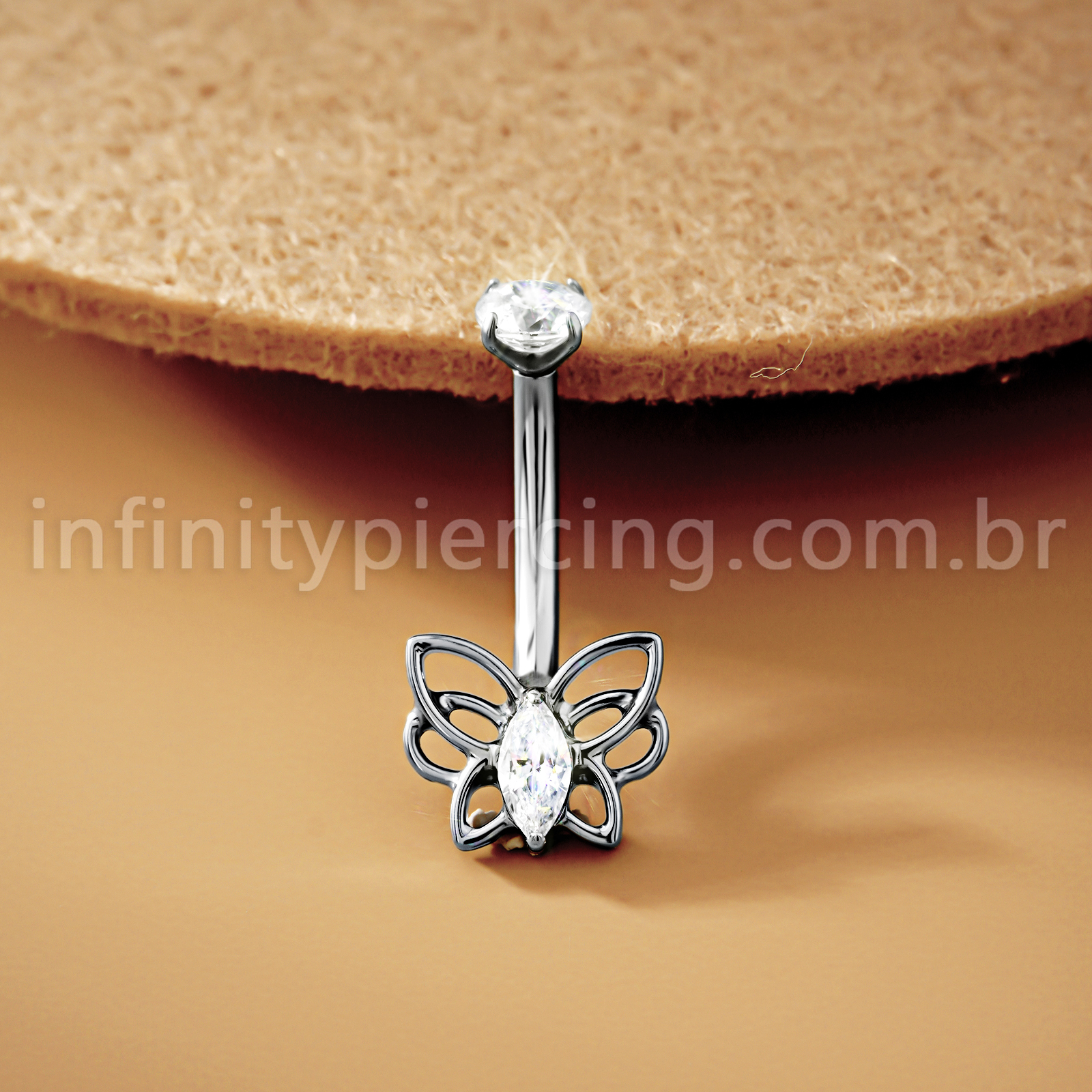Tem alguma dúvida relacionada a Piercing Banana Titânio Borboleta Zircônia Cravejada?