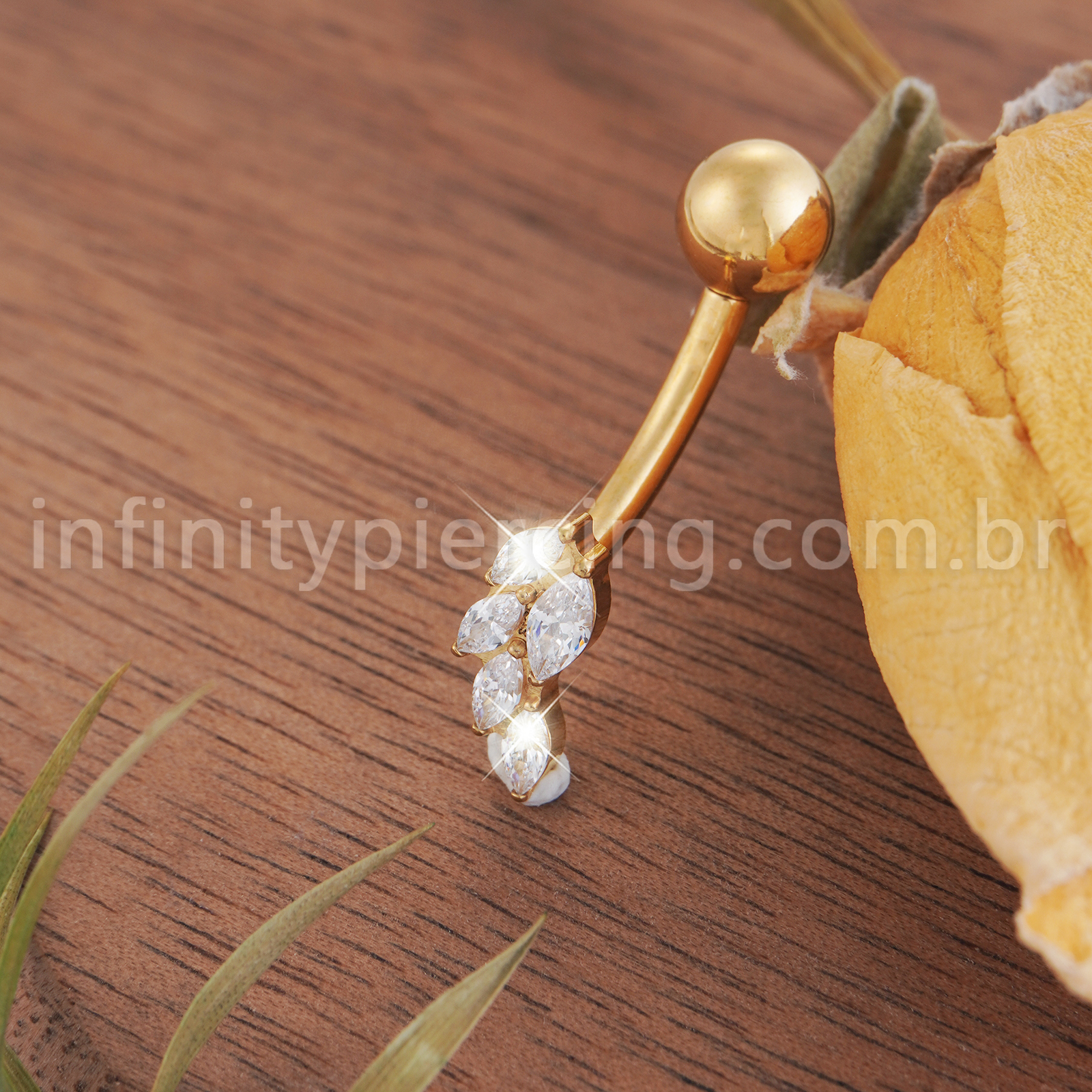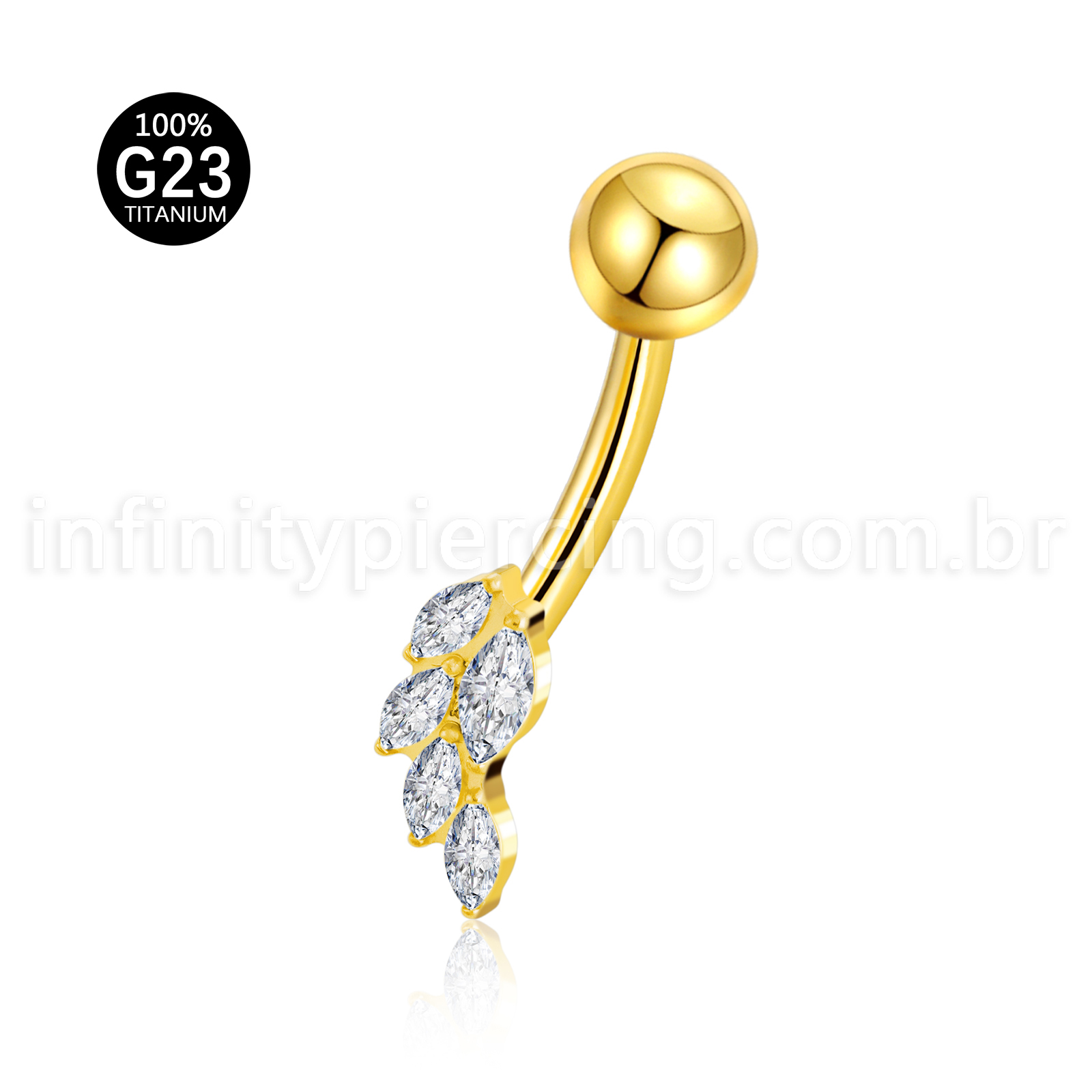 Piercing Banana Titânio Folhas Zircônia Cravejada - Infinity Piercing