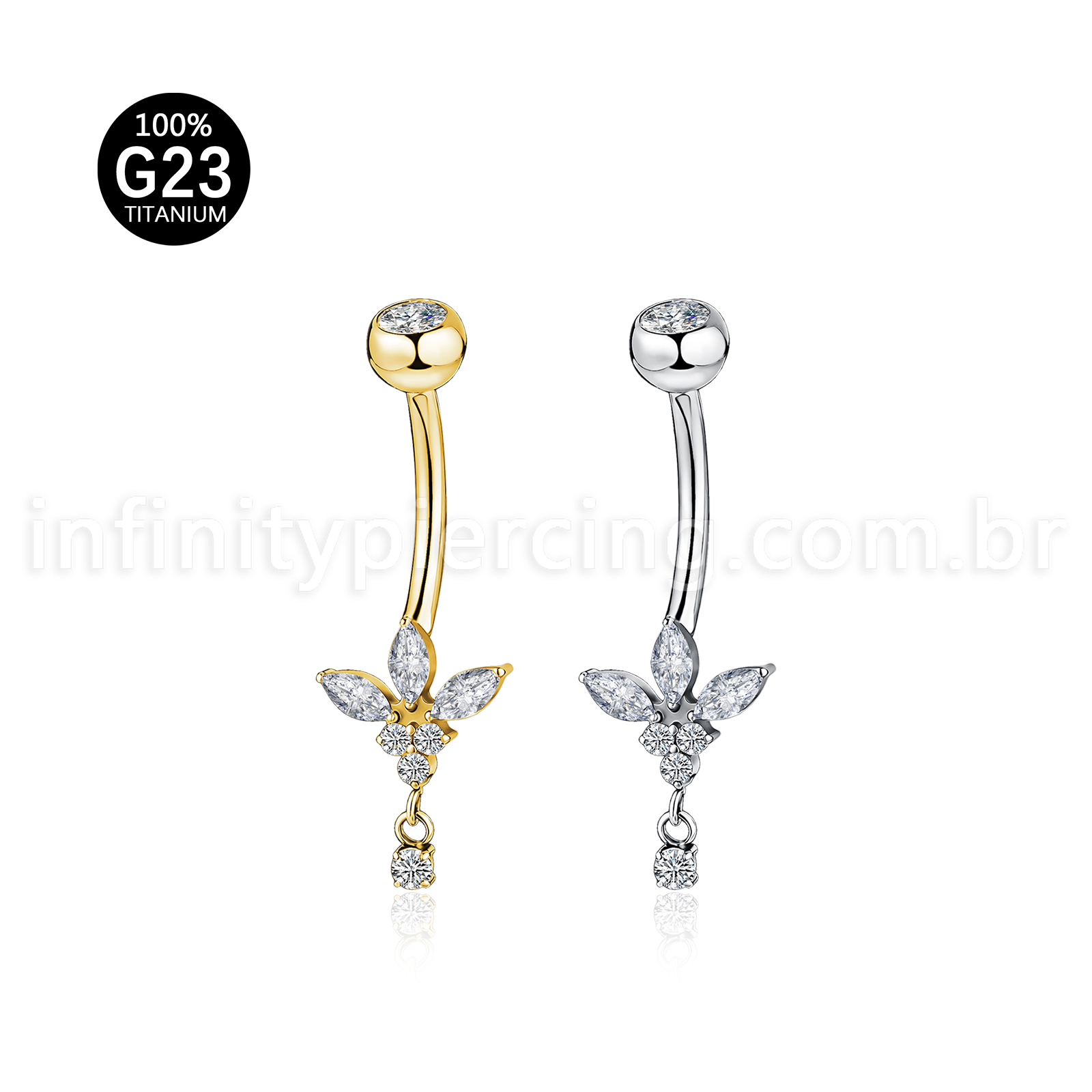 Tem alguma dúvida relacionada a Piercing Banana Titânio Meia Flor Zircônia Cravejada?