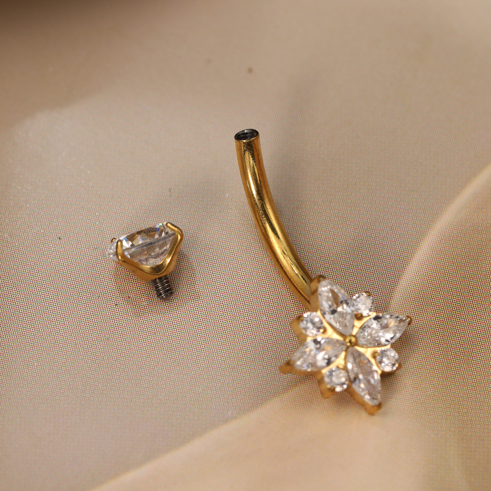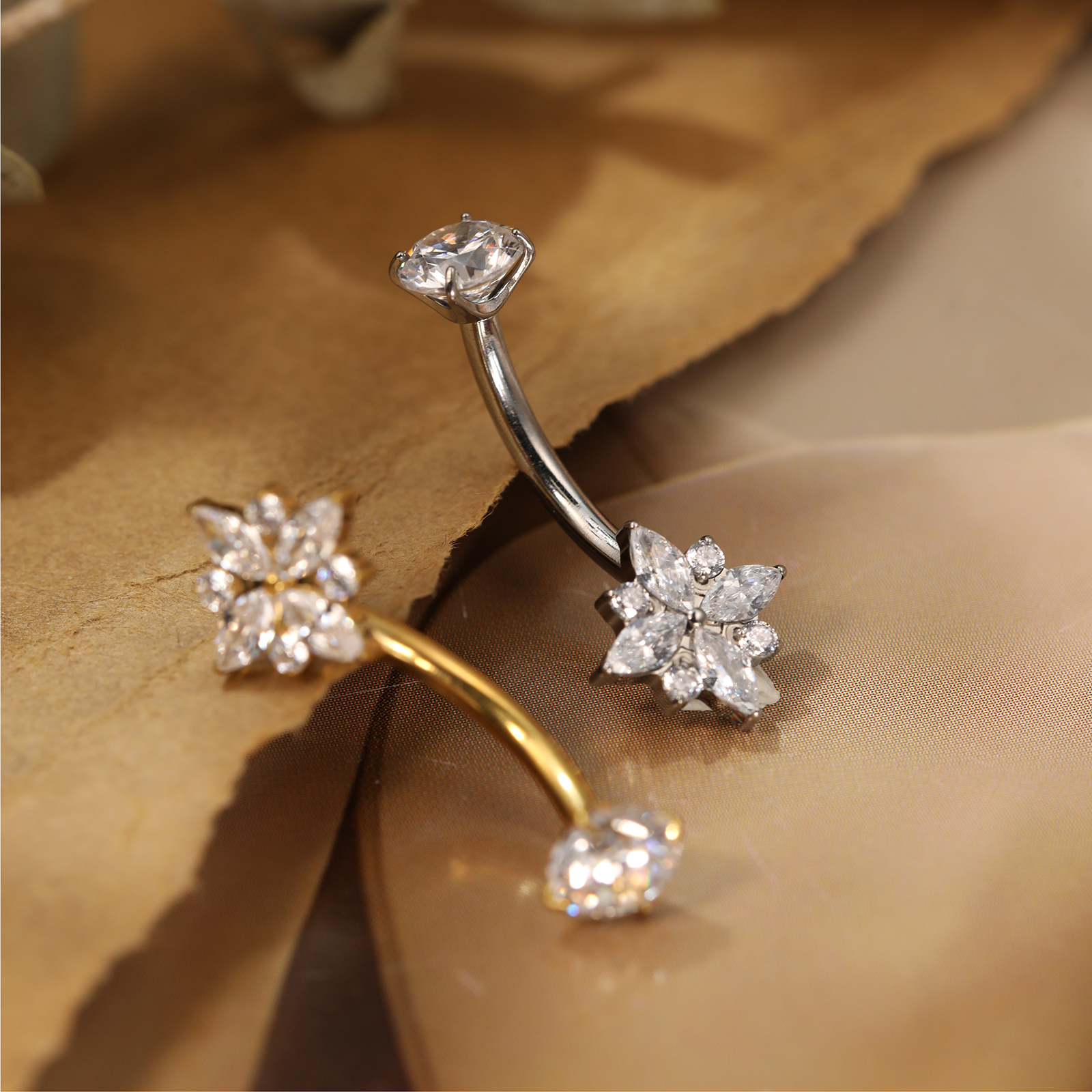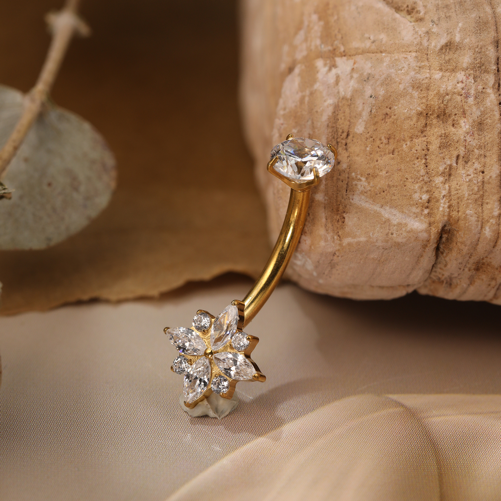 Piercing Banana Titânio Pvd Flor Zircônia Cravejada - Infinity Piercing