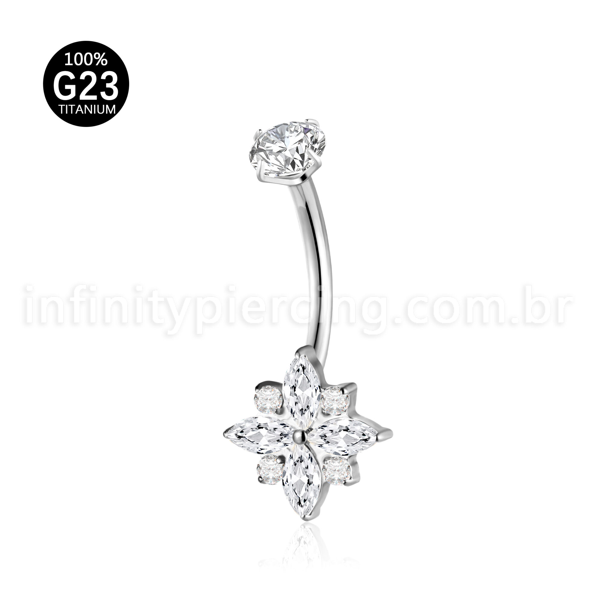 Tem alguma dúvida relacionada a Piercing Banana Titânio Pvd Flor Zircônia Cravejada?