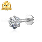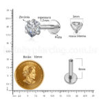 Piercing Labret Prata Ponto De Luz Zircônia Cravada