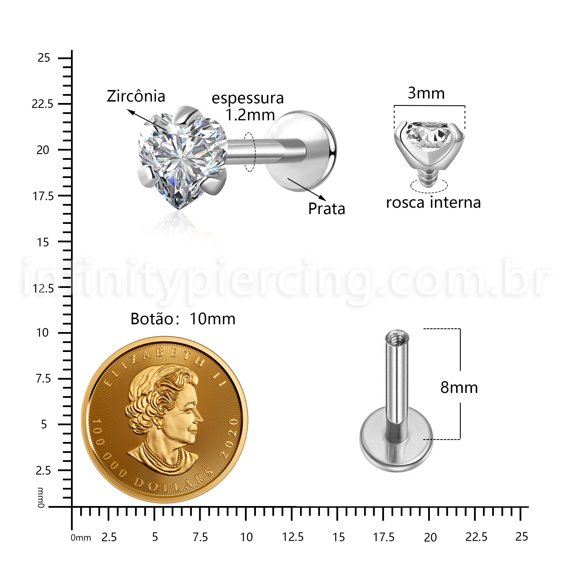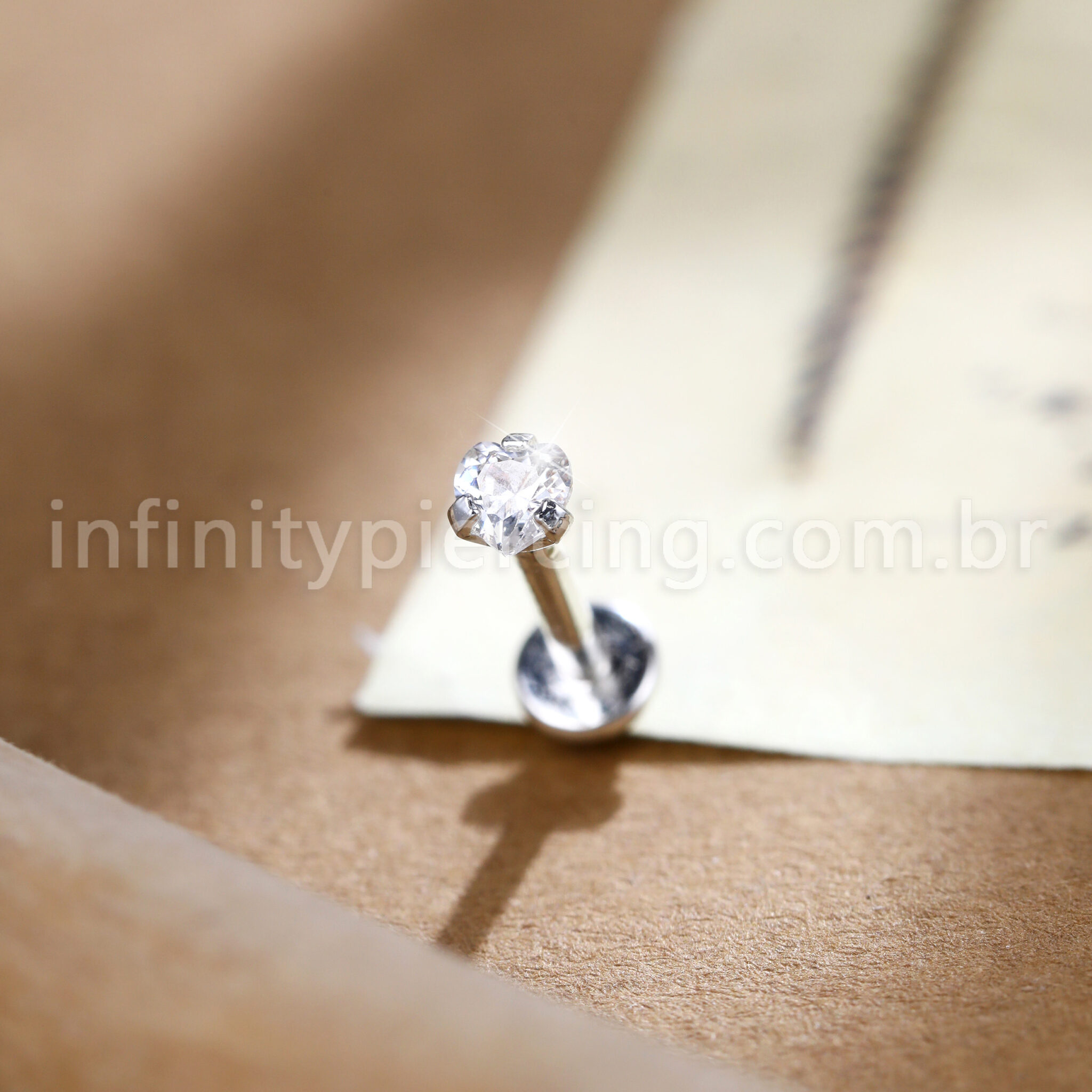 Piercing Labret Prata Coração Zircônia Cravejada - Infinity Piercing