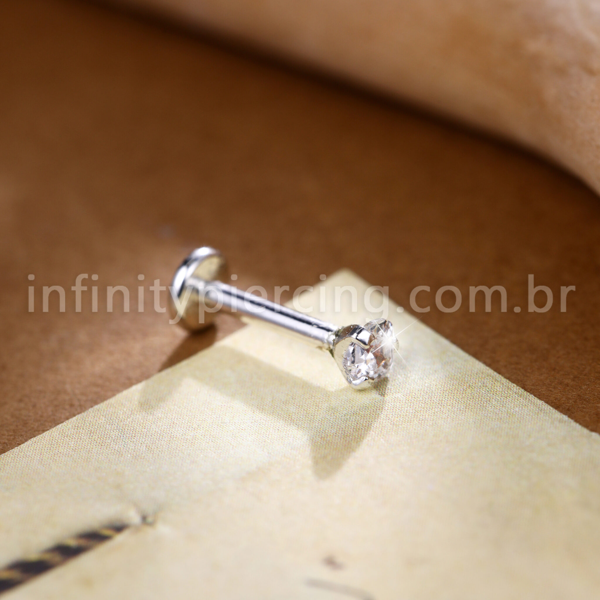 Piercing Labret Prata Ponto De Luz Zircônia Cravada