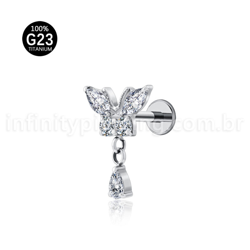 Piercing Labret Titânio Borboleta Zircônia Cravejada