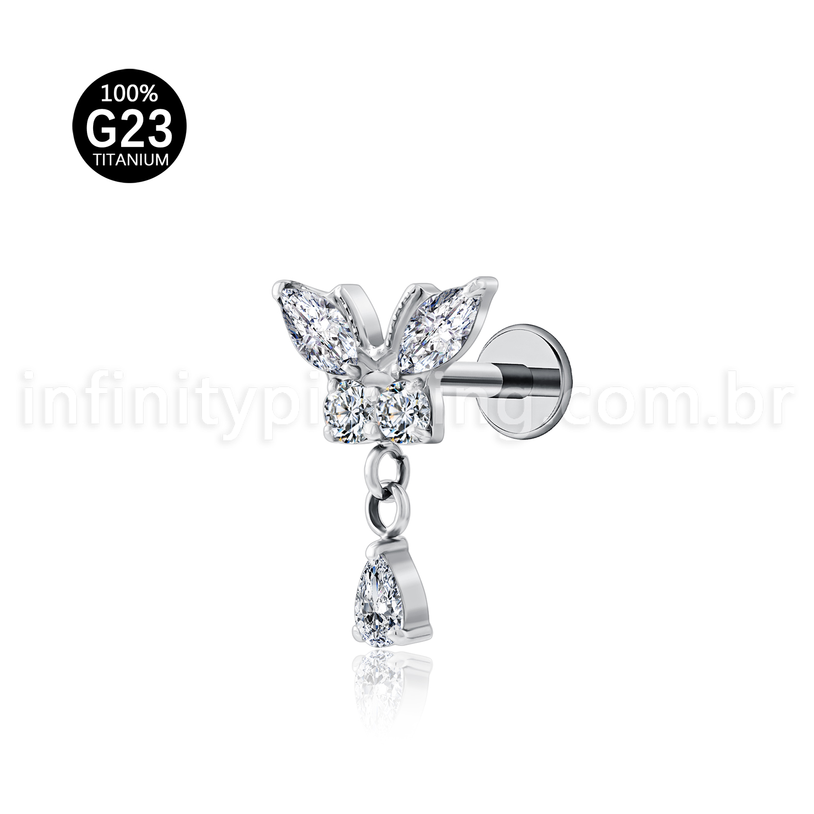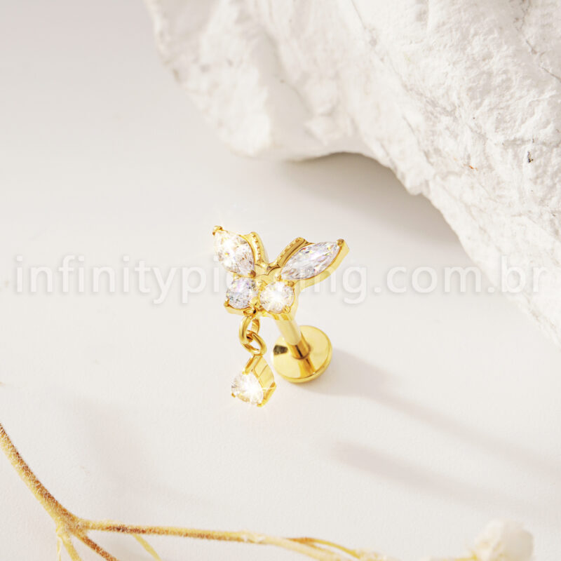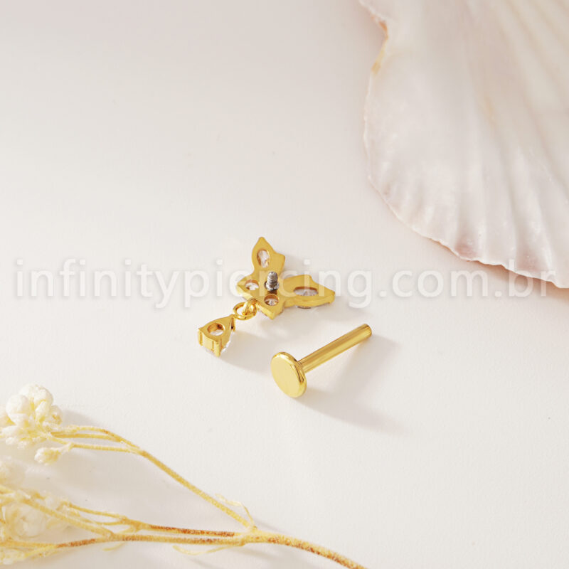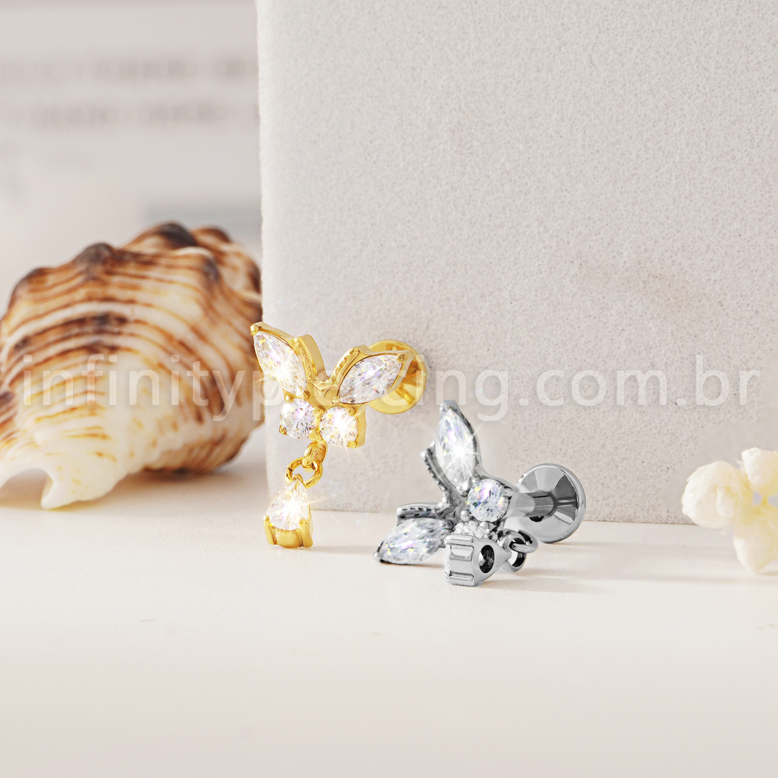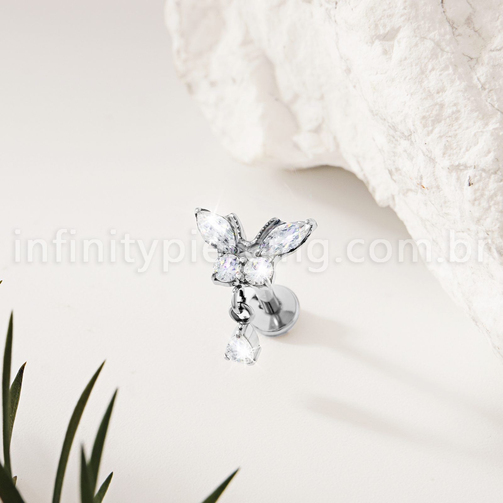 Piercing Labret Titânio Borboleta Zircônia Cravejada - Infinity Piercing