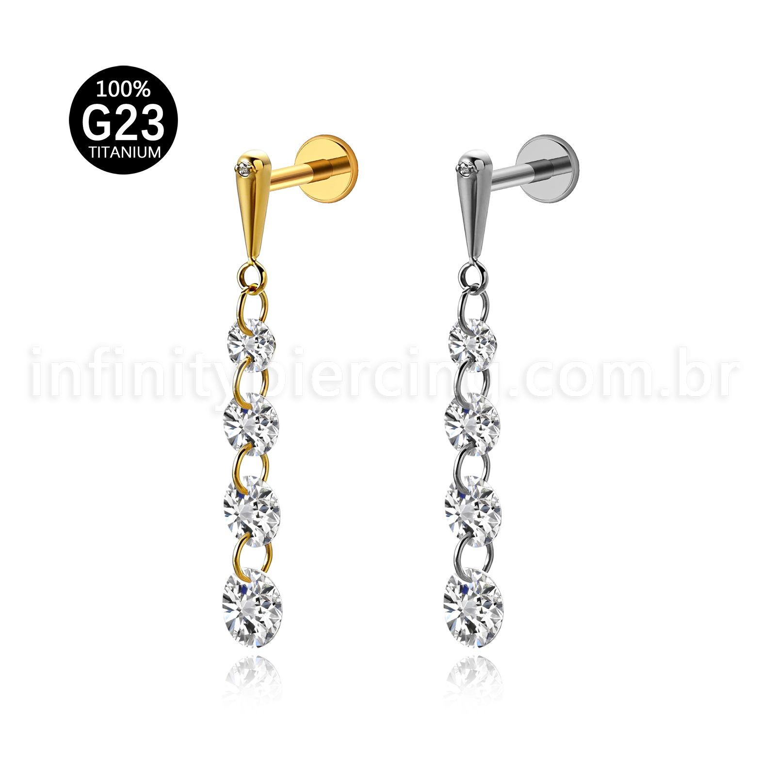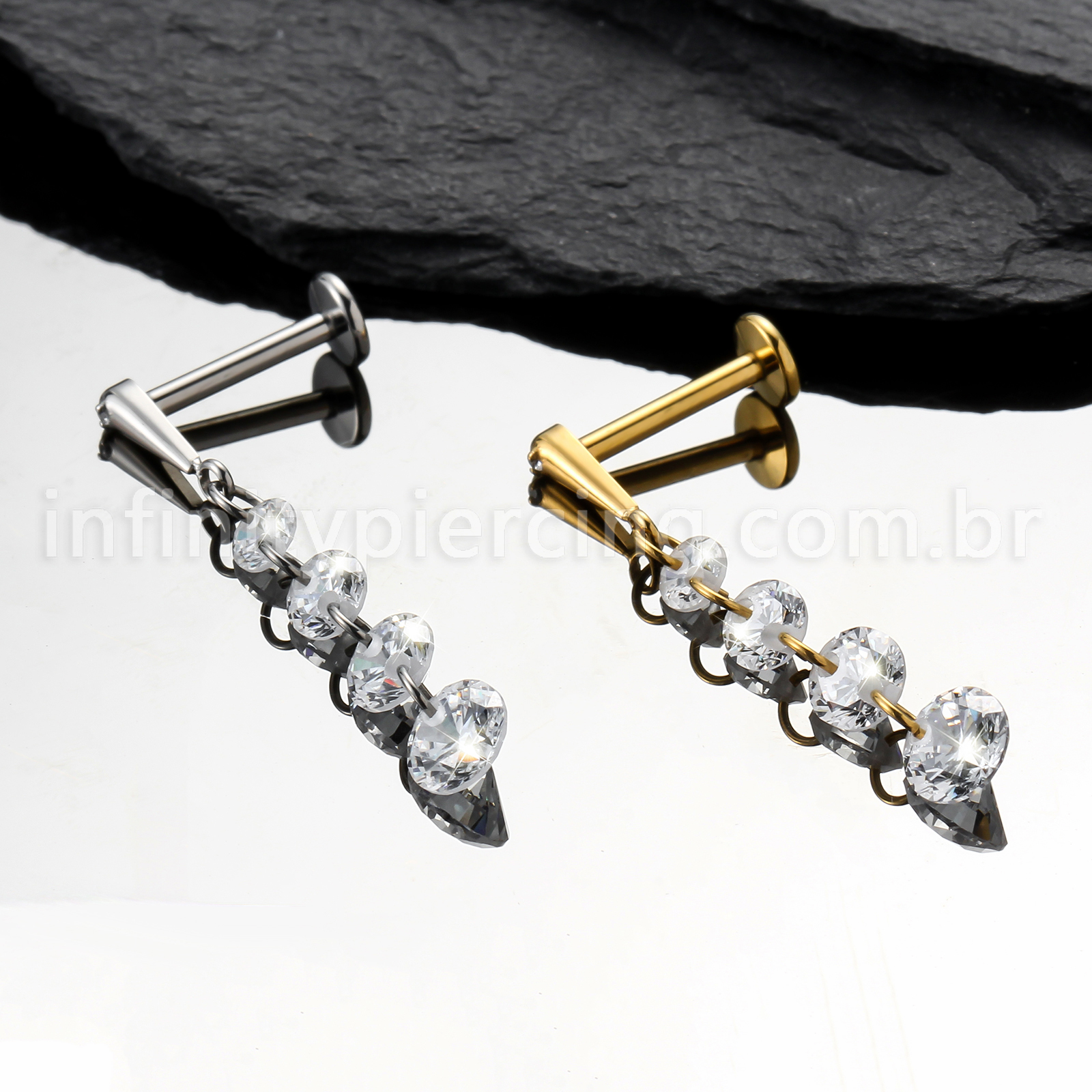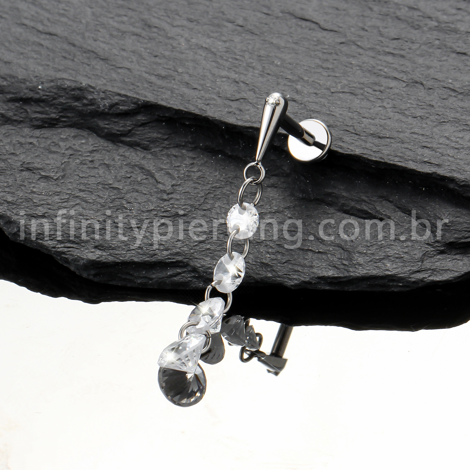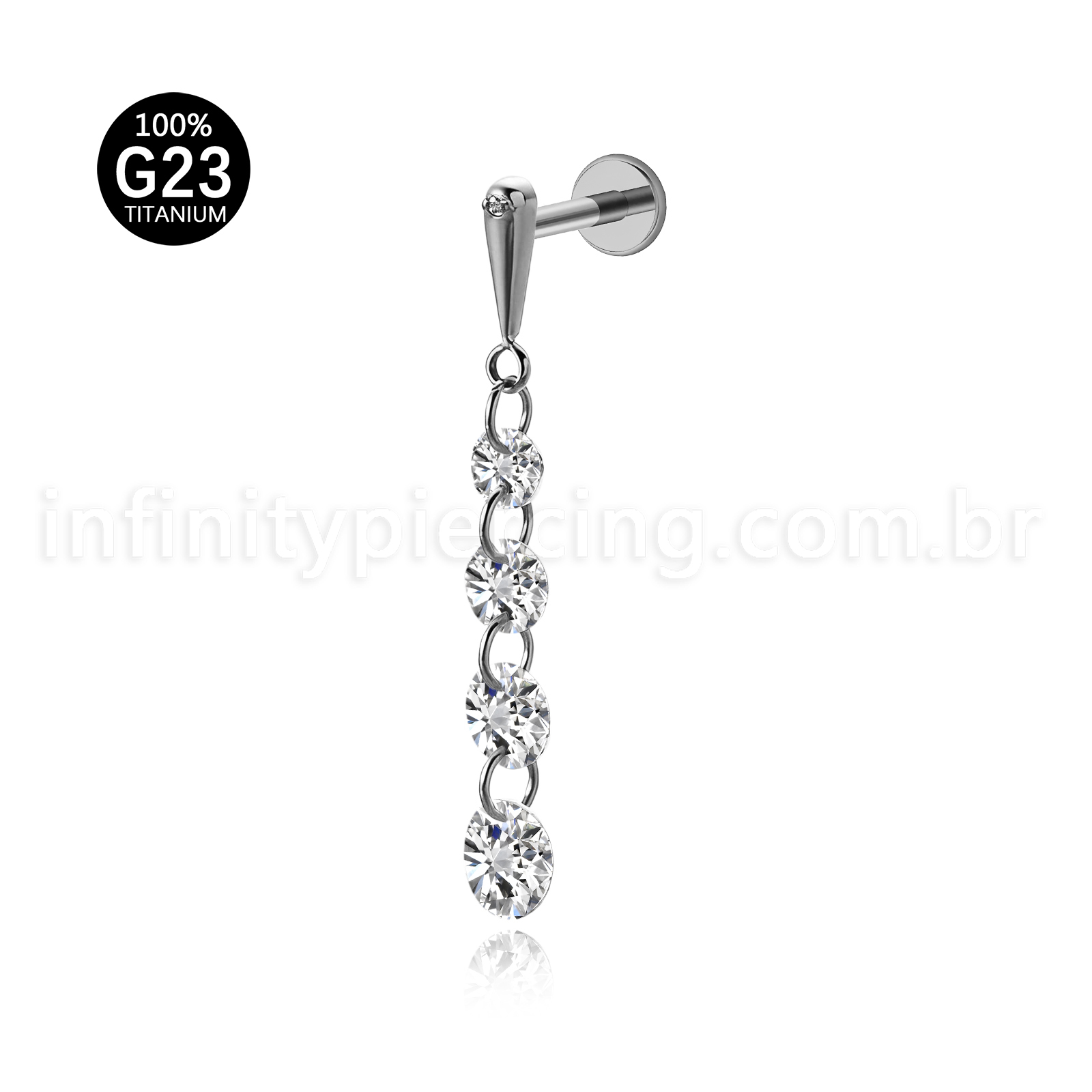 Piercing Labret Titânio Com Pingente Zircônias - Infinity Piercing
