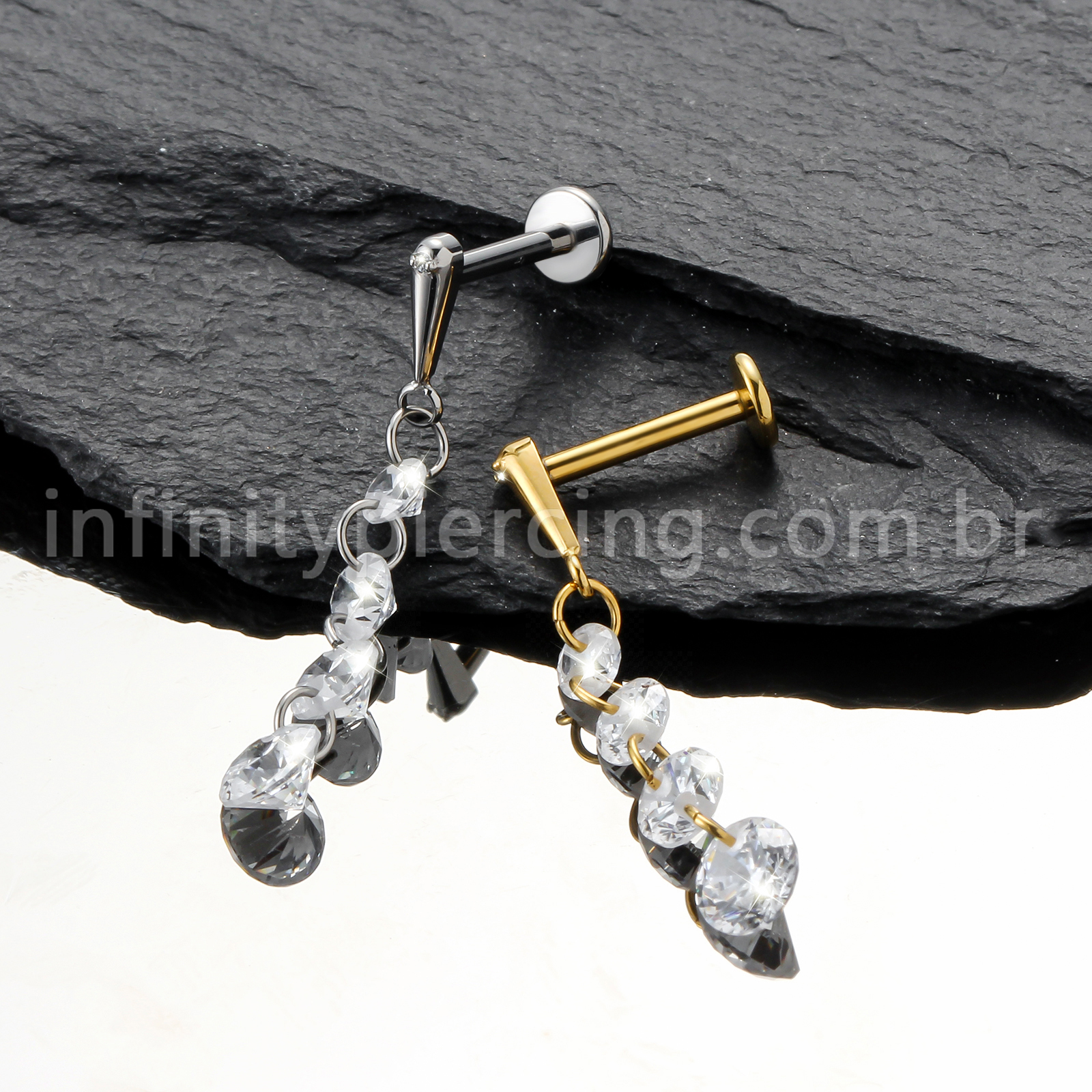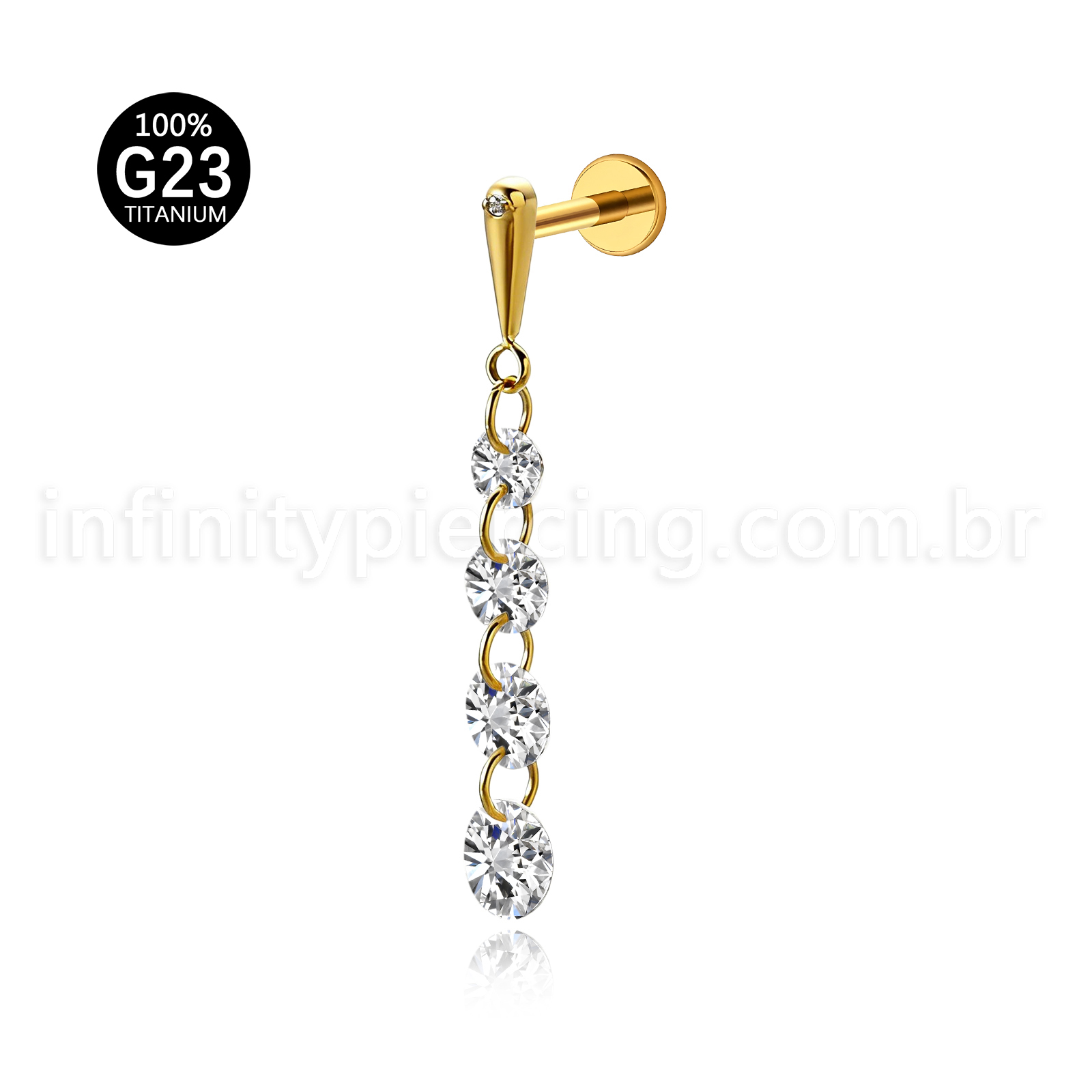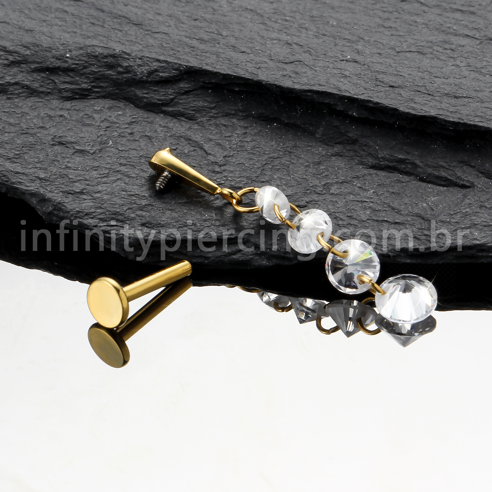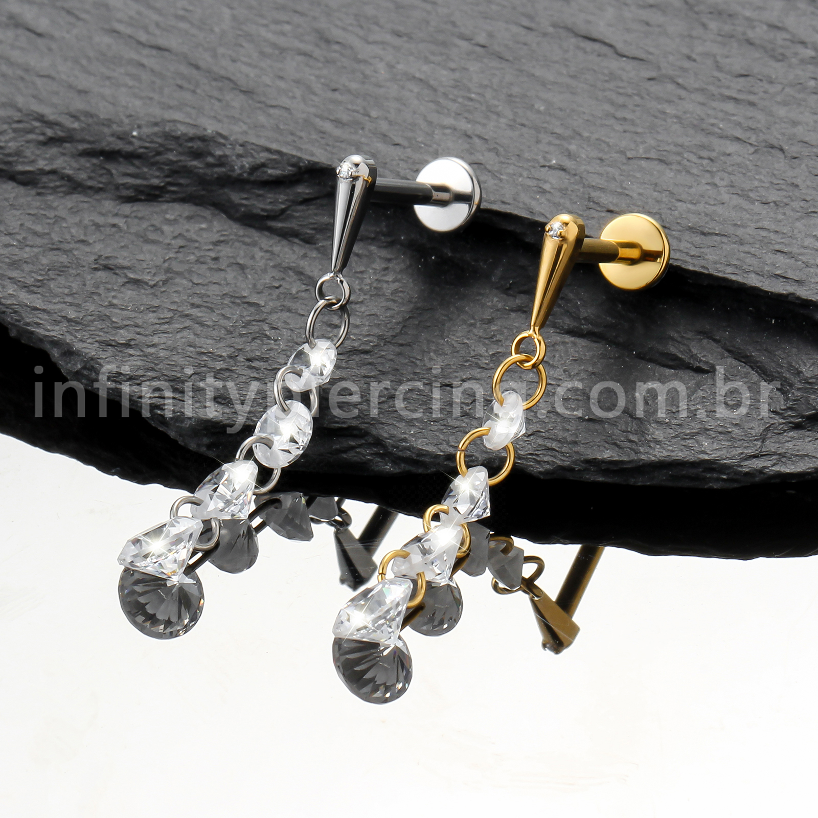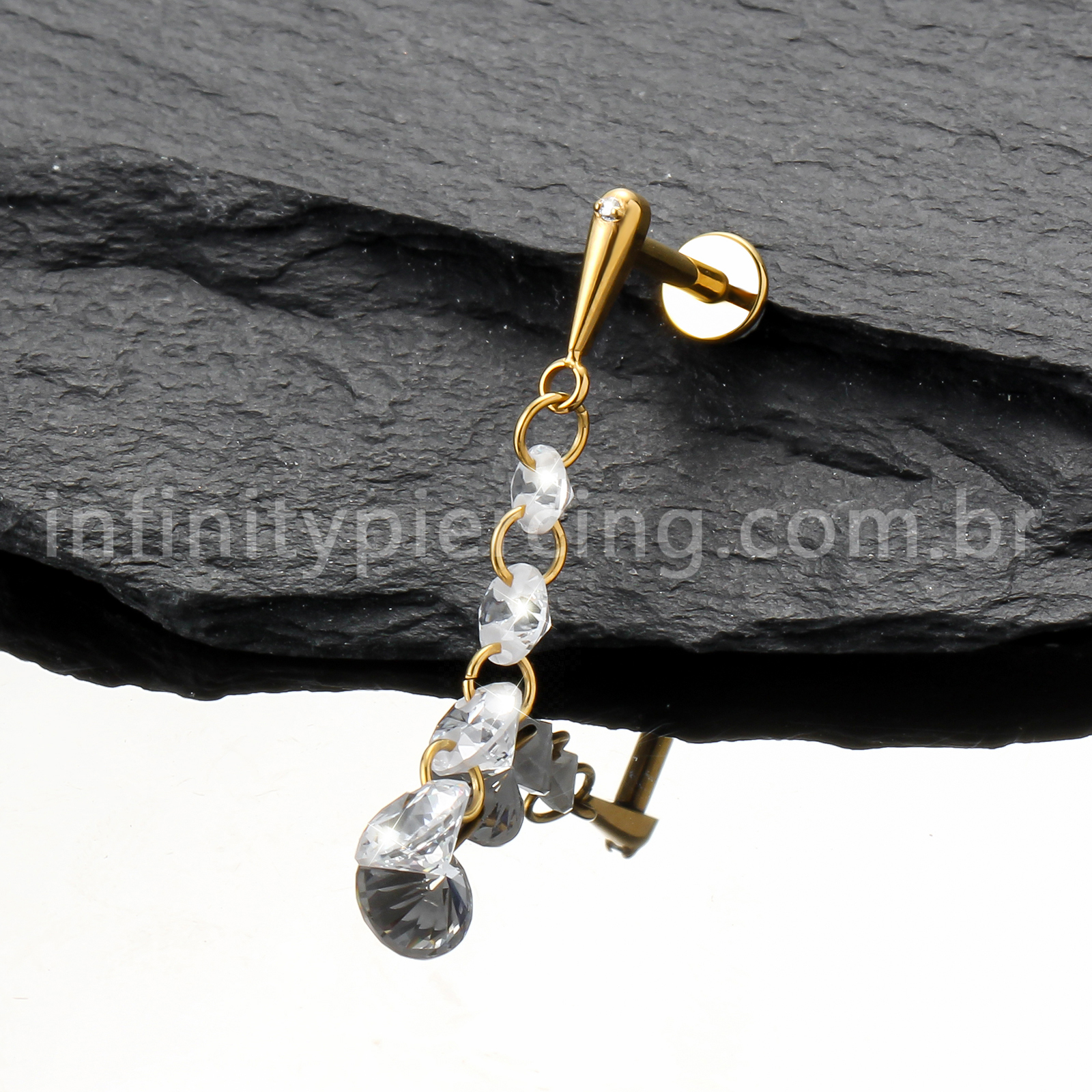 Piercing Labret Titânio Com Pingente Zircônias - Infinity Piercing