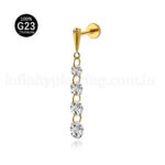 Piercing Labret Titânio Com Pingente Zircônias