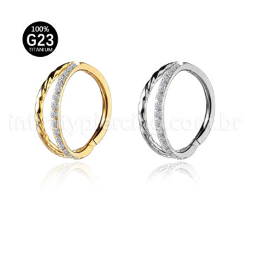 Piercing Argola Titânio Duas Fileiras Torcida/Zircônia Cravejada Faça login para ver os preços