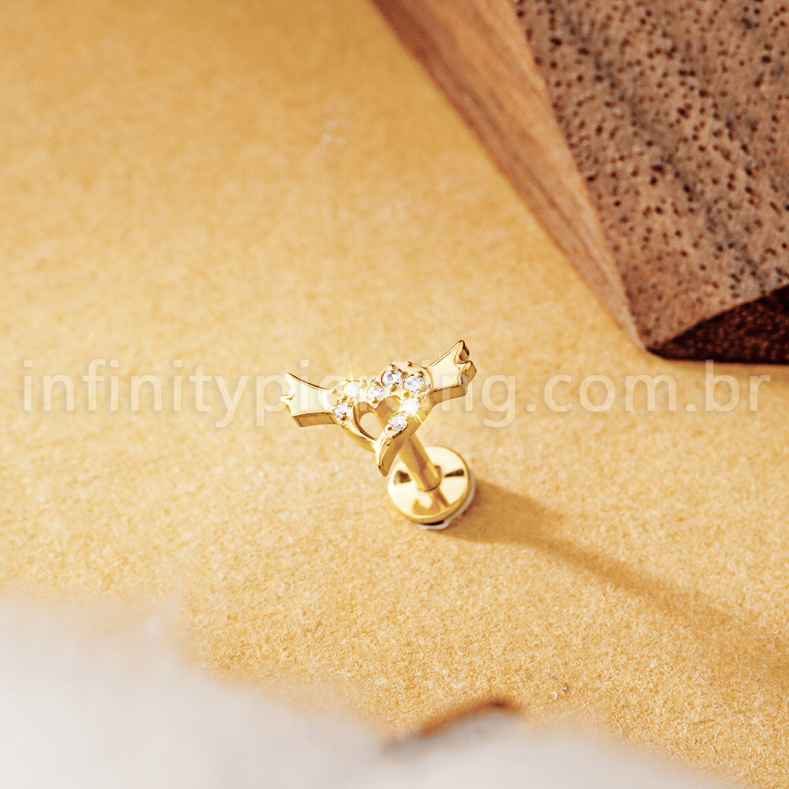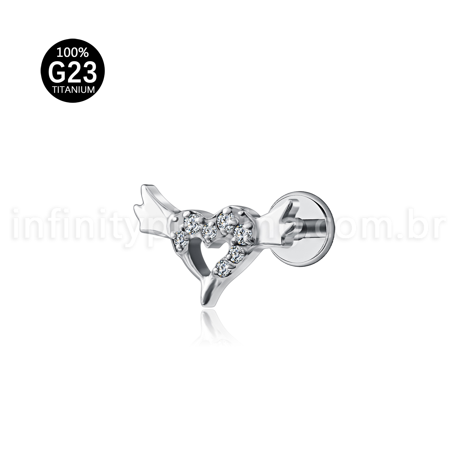Piercing Labret Titânio Coração Com Asas Zircônia Cravejada - Infinity Piercing