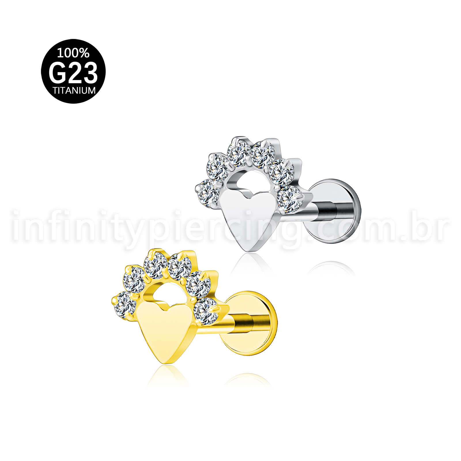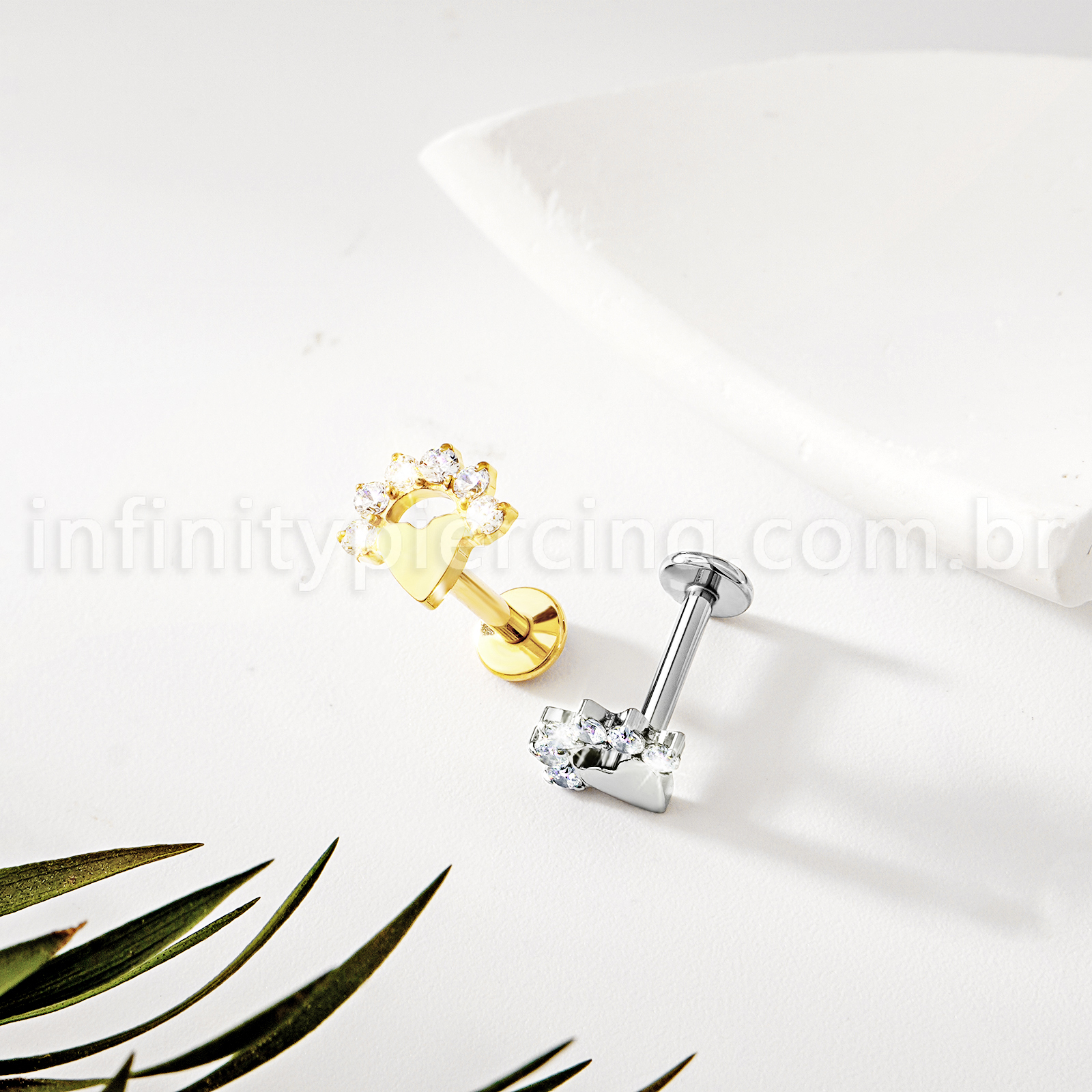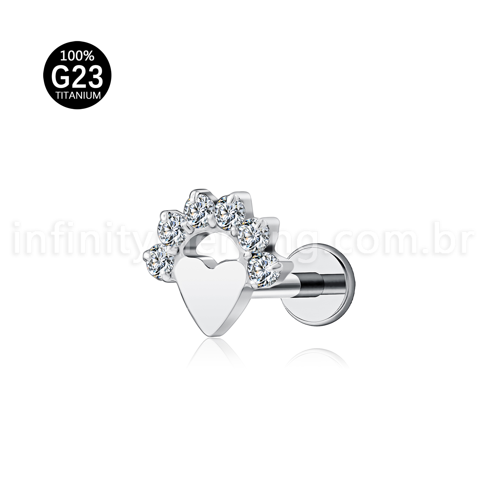 Piercing Labret Titânio Coração Com Zircônia Cravejada - Infinity Piercing