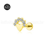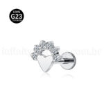Piercing Labret Titânio Coração Com Zircônia Cravejada