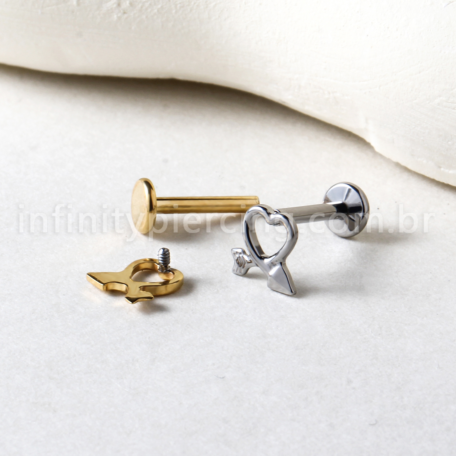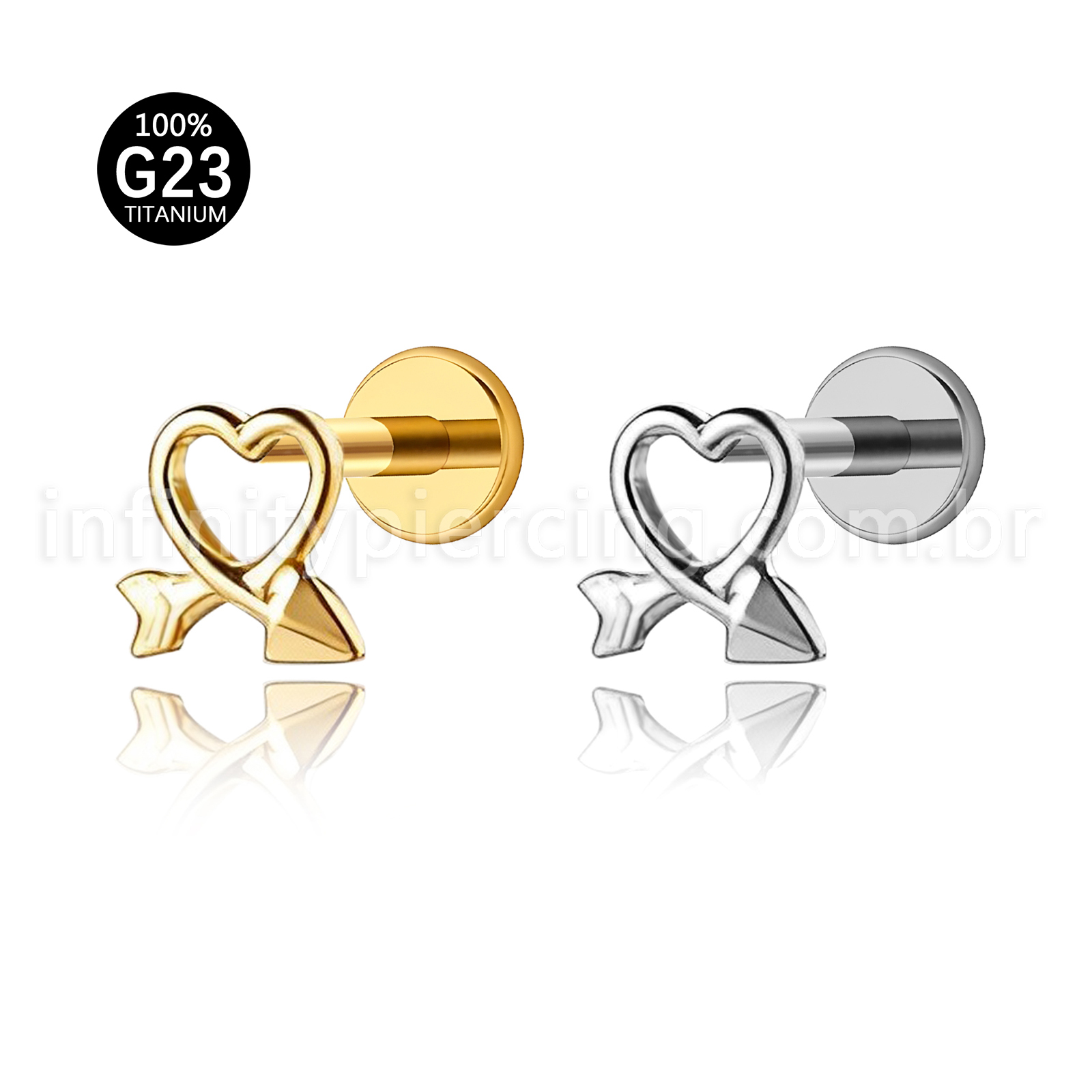 Piercing Labret Titânio Coração/Flecha - Infinity Piercing