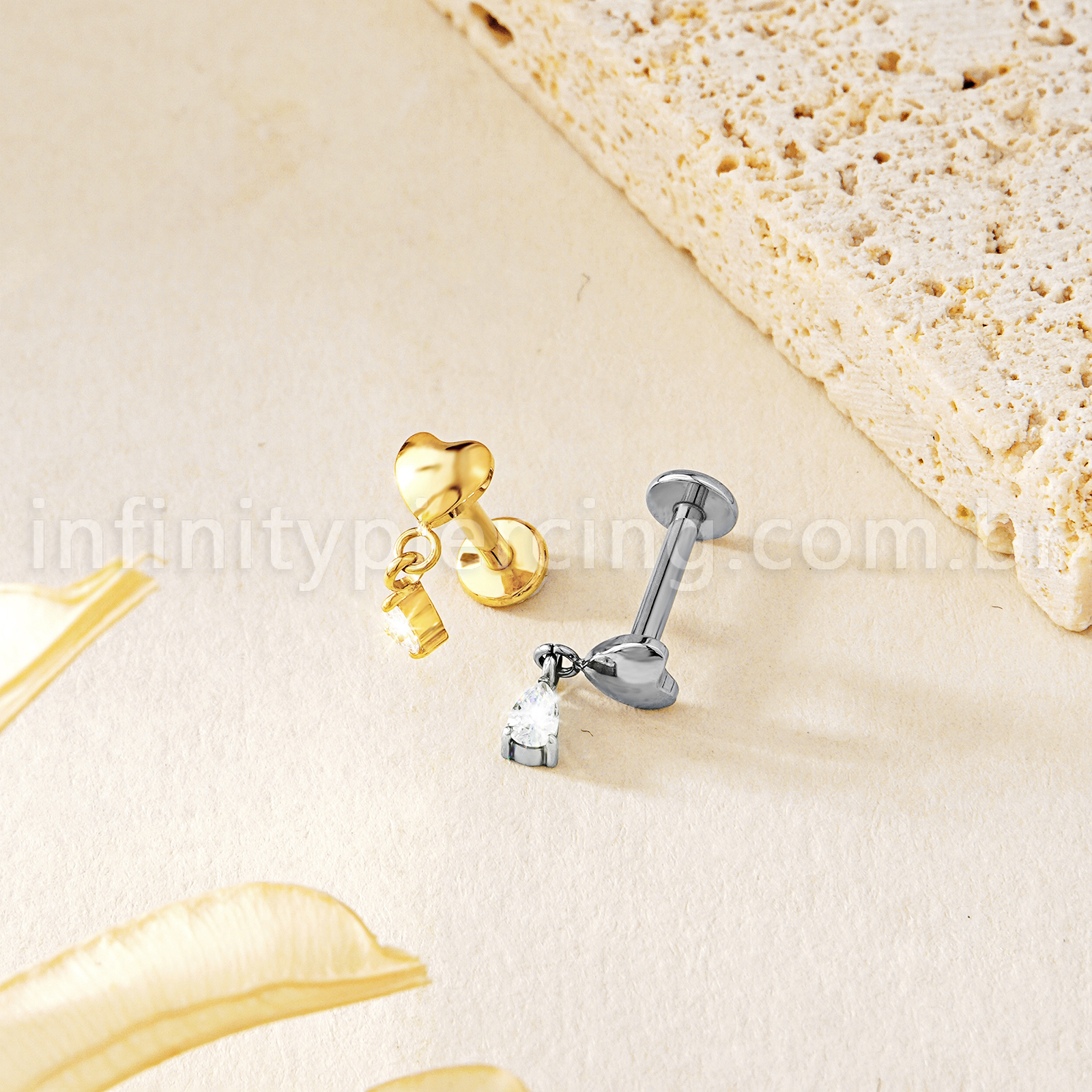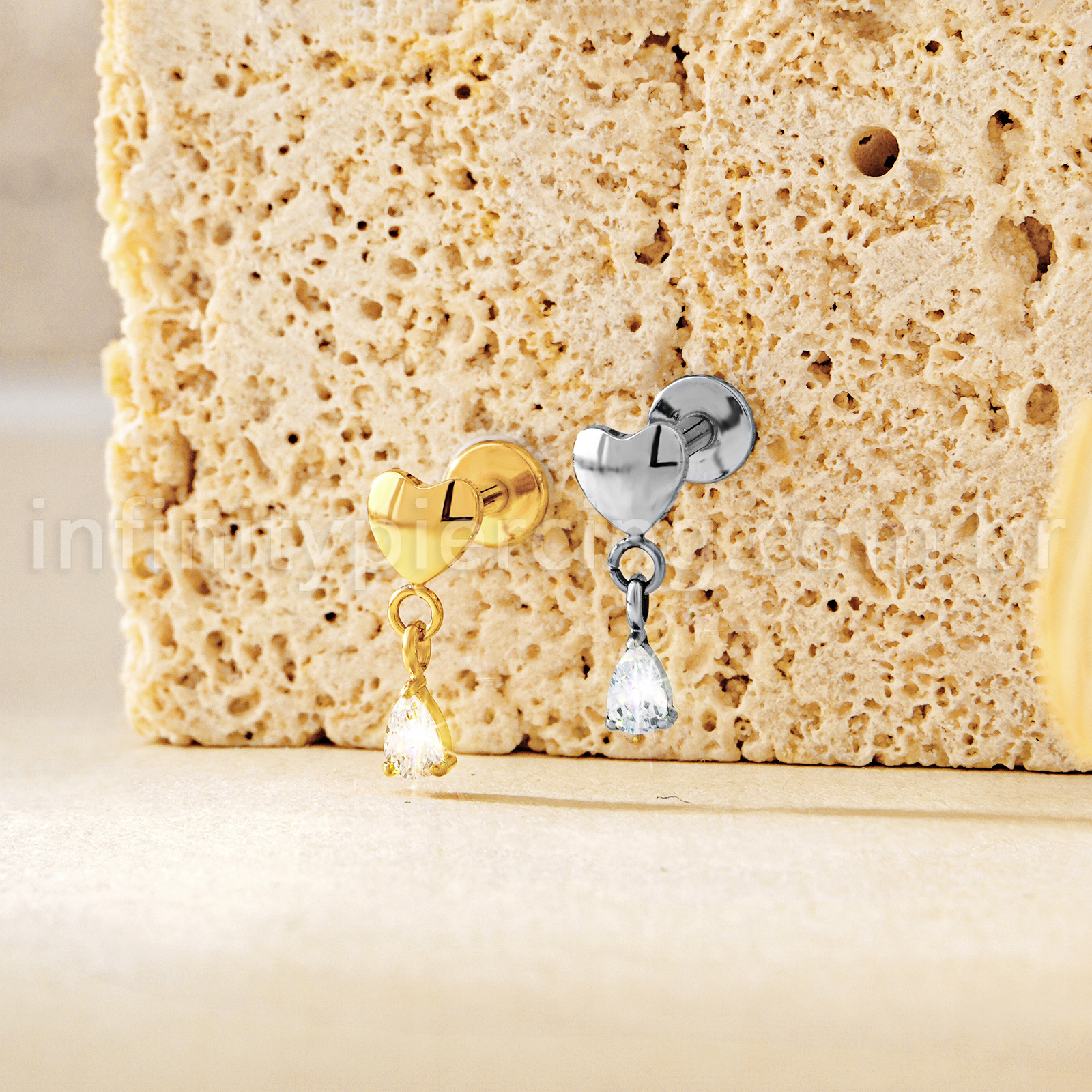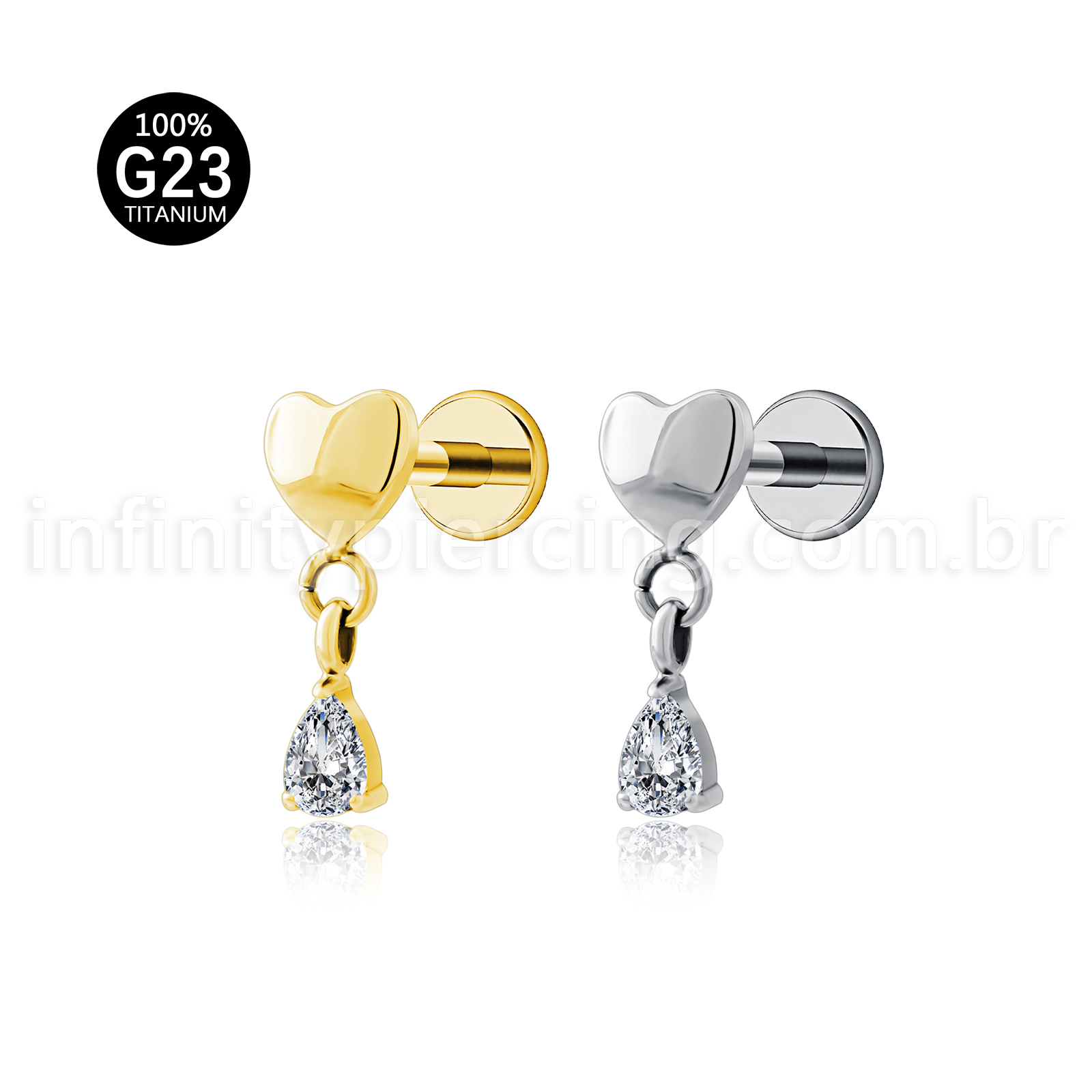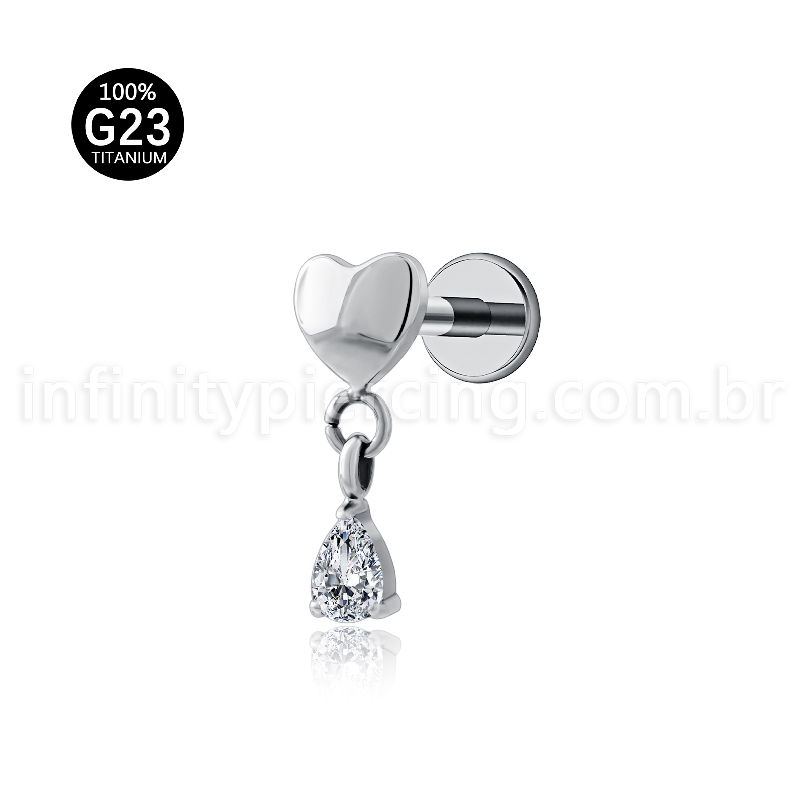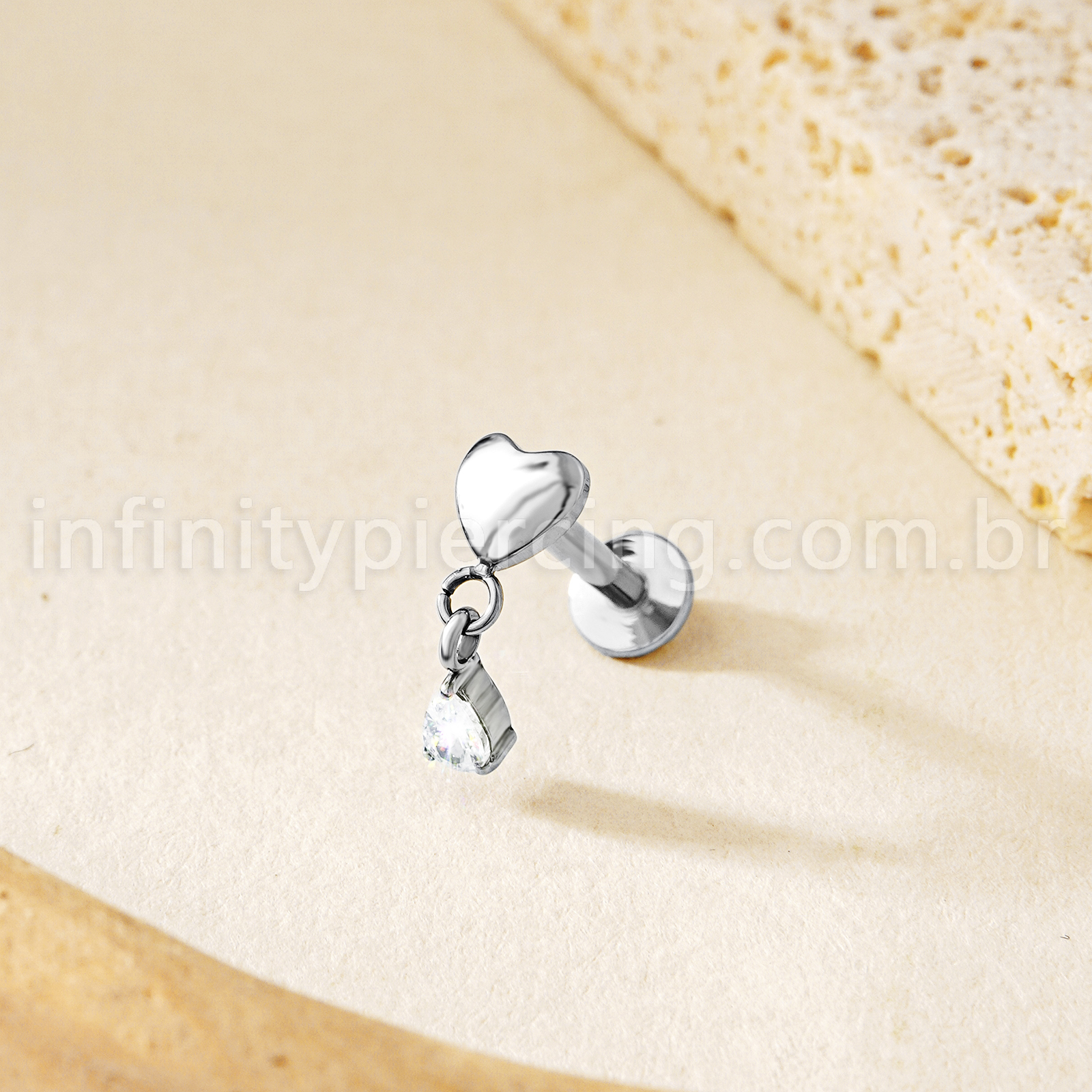 Piercing Labret Titânio Coração Pingente Gota - Infinity Piercing