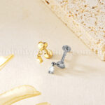 Piercing Labret Rosca Interna Titânio Zircônia Folhas