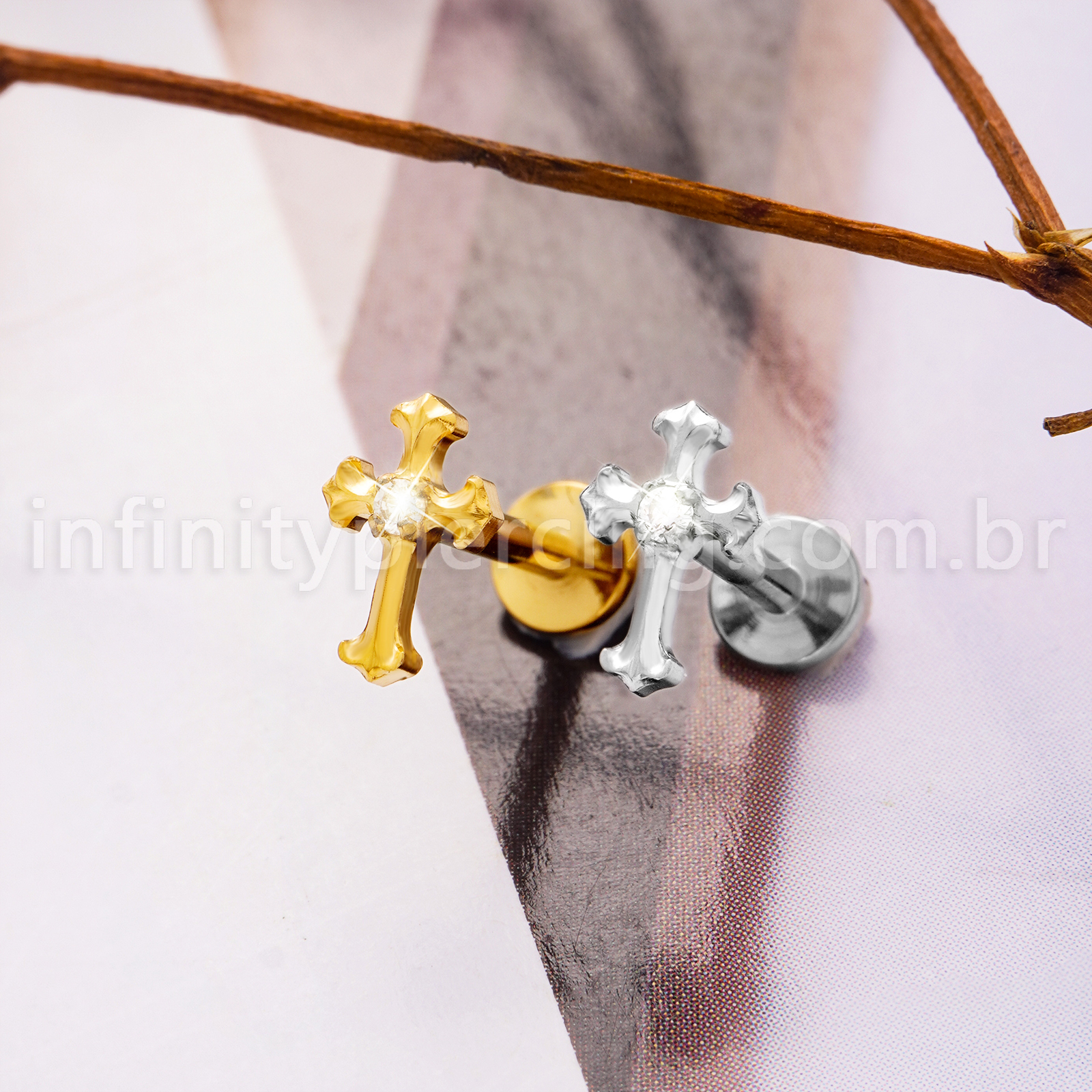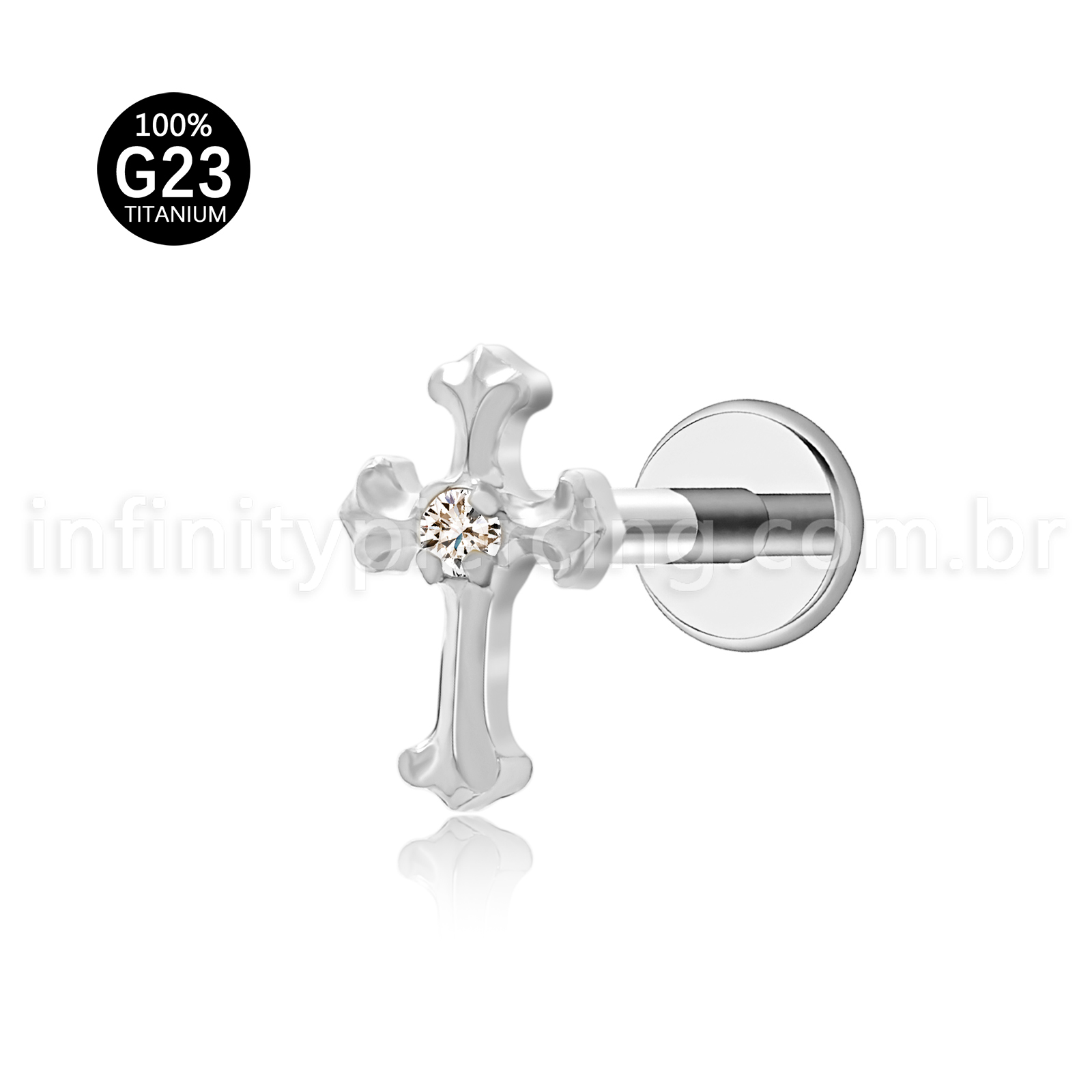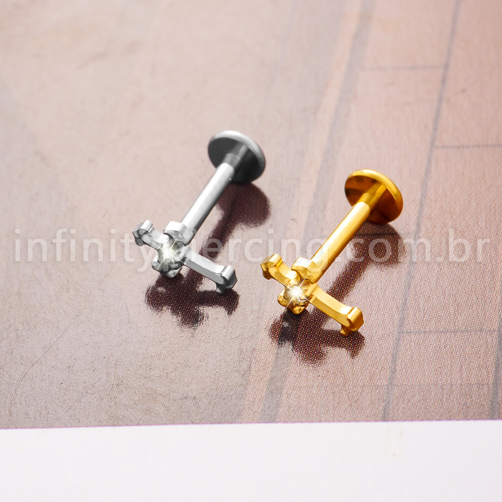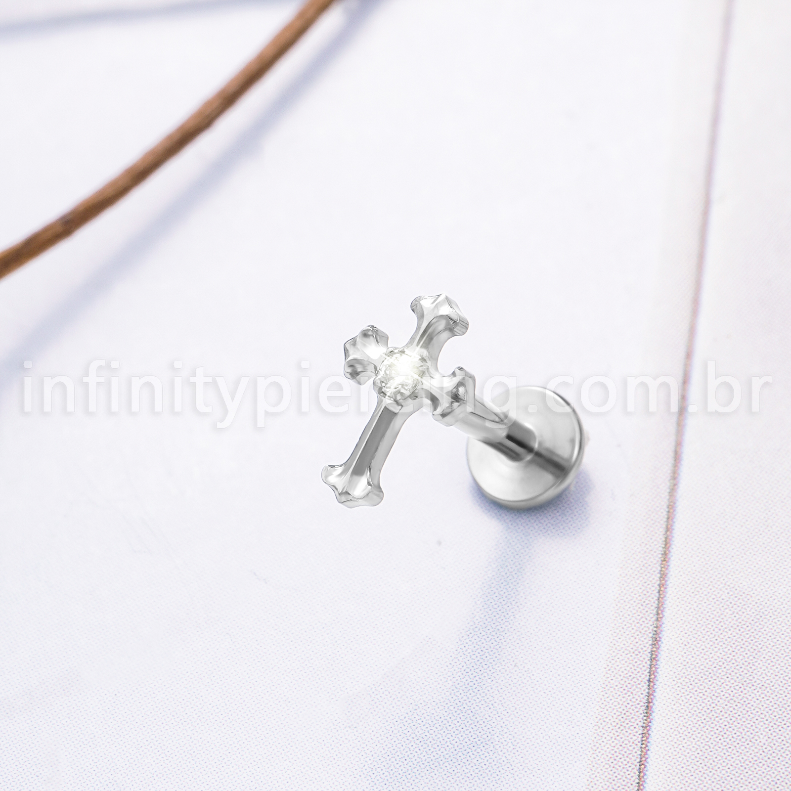 Piercing Labret Titânio Cruz - Infinity Piercing