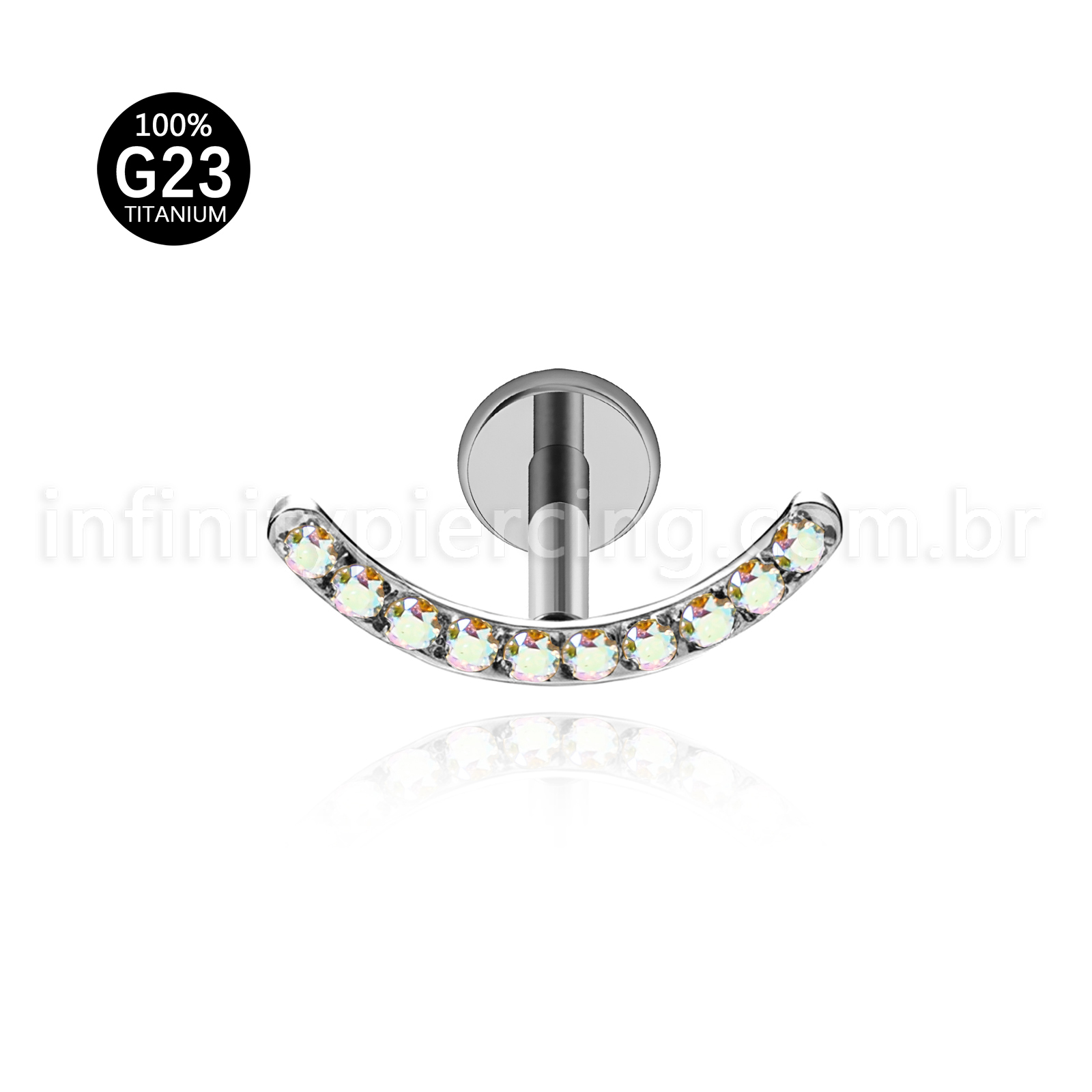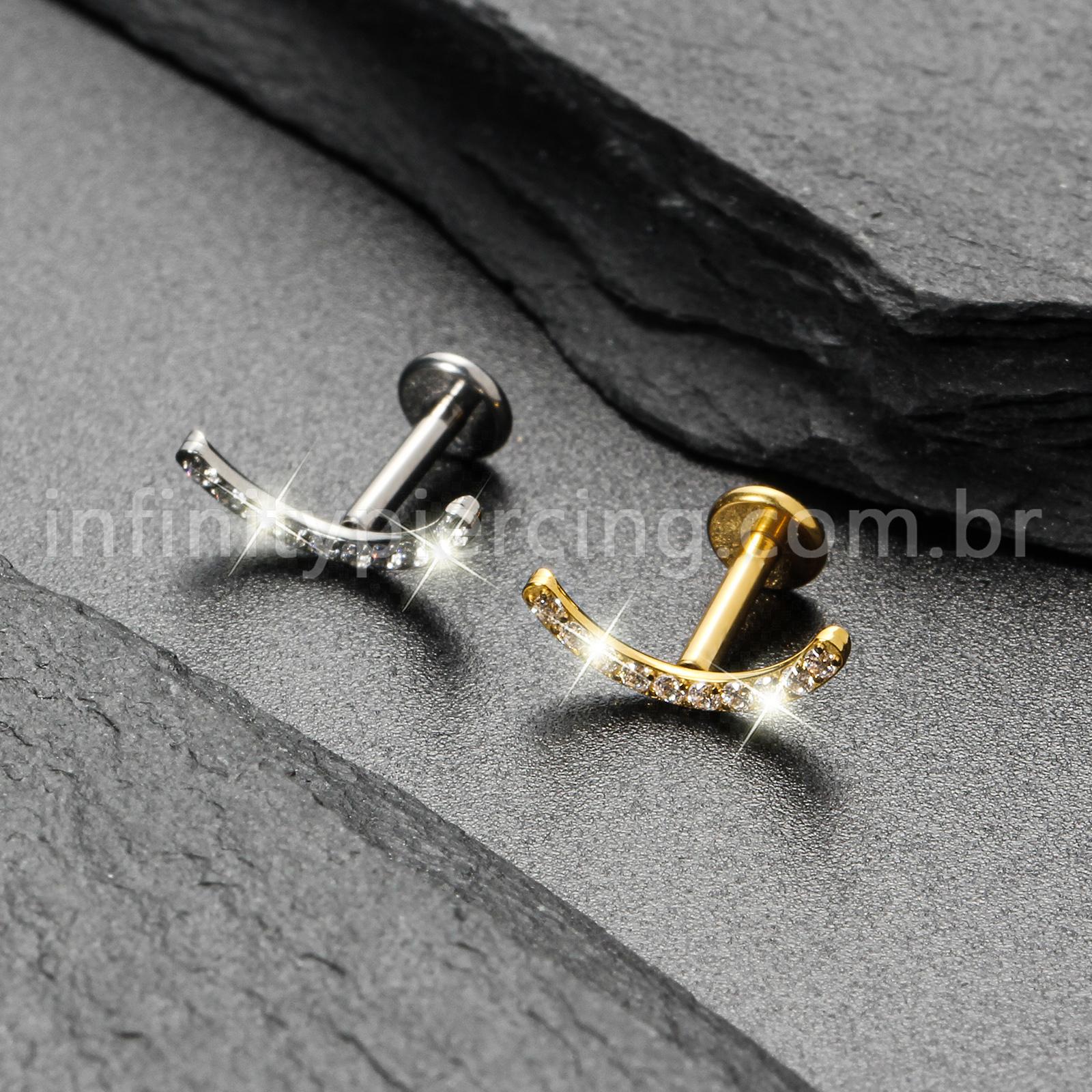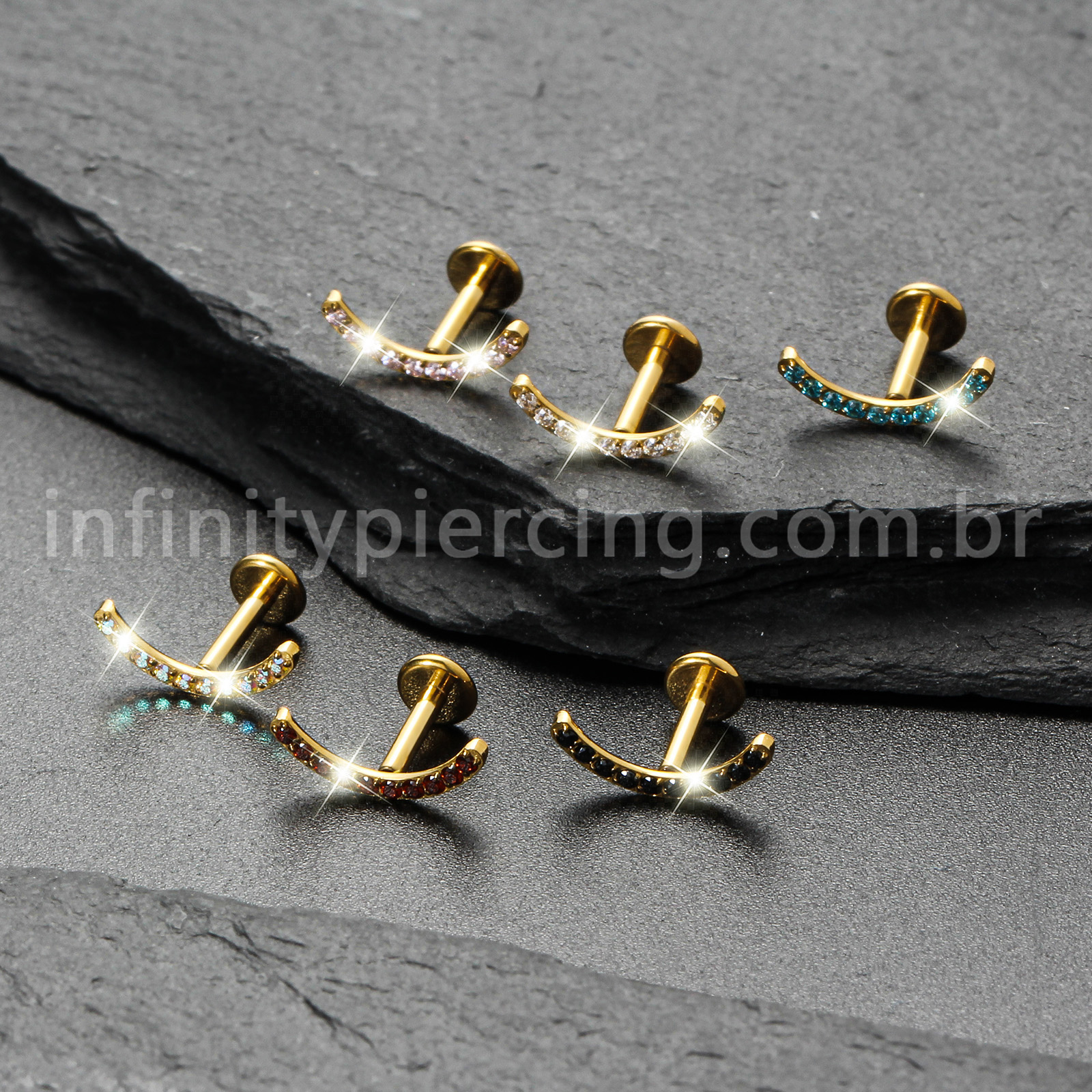Piercing Labret Titânio Curvo Com Zircônia Colorida - Infinity Piercing