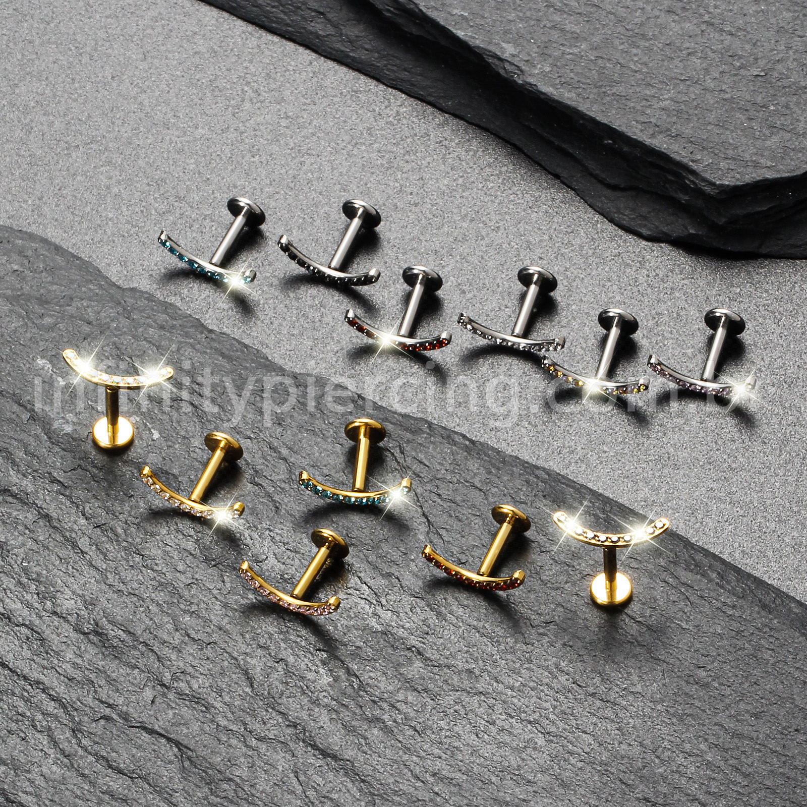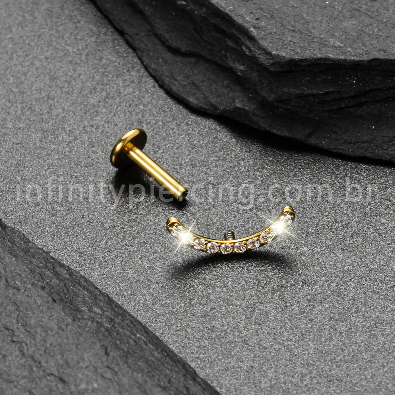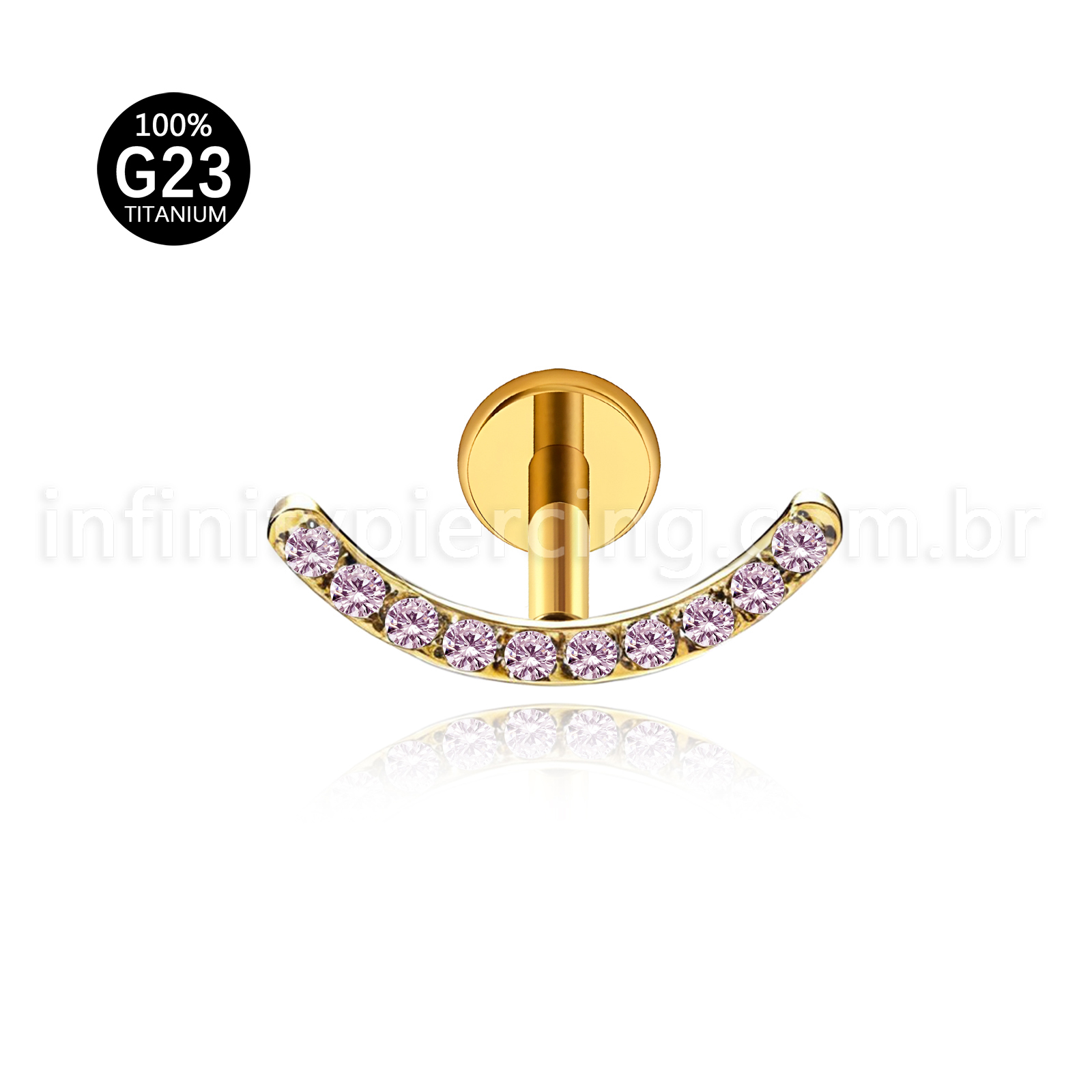 Piercing Labret Titânio Curvo Com Zircônia Colorida - Infinity Piercing