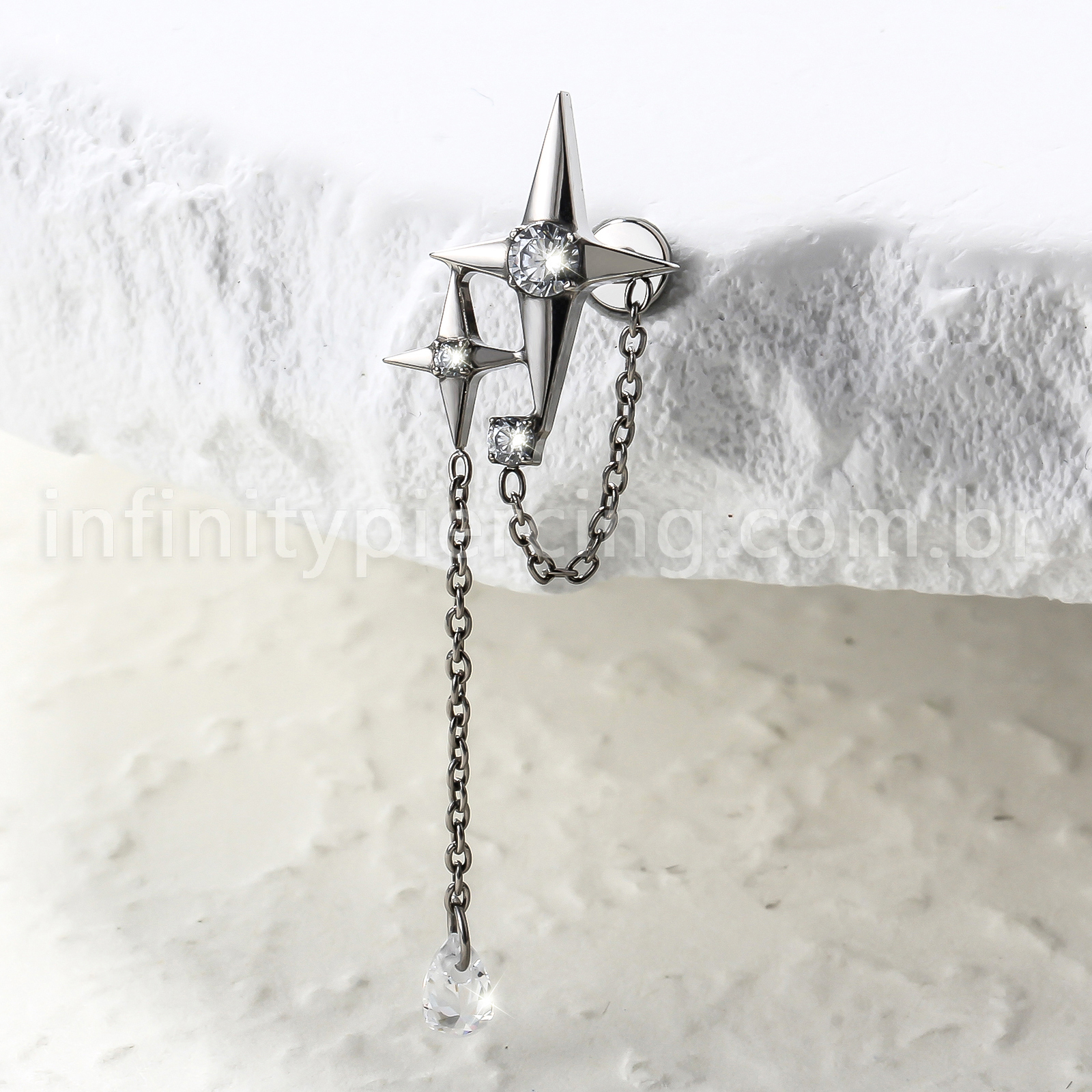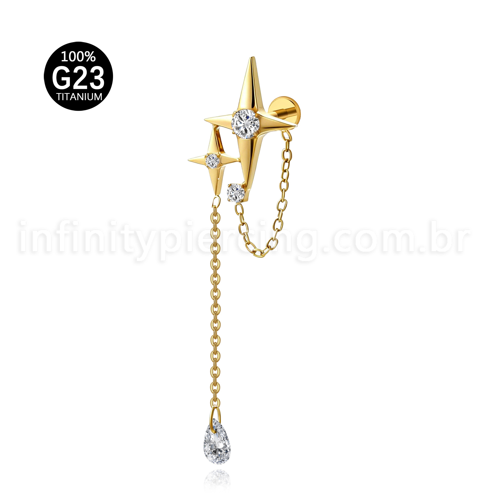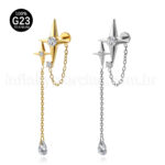 Piercing Labret Titânio Estrela 4 Pontas Com Corrente - Infinity Piercing