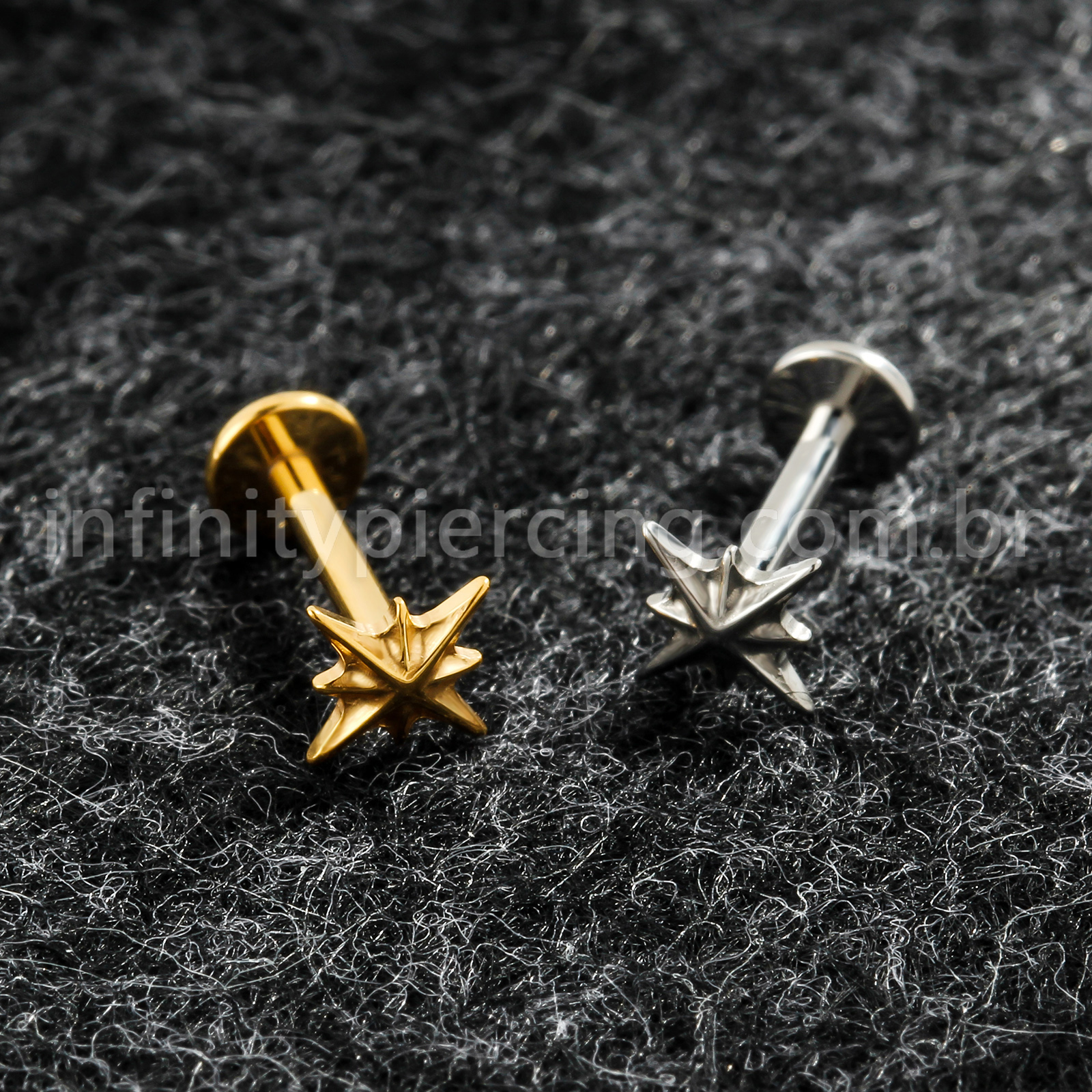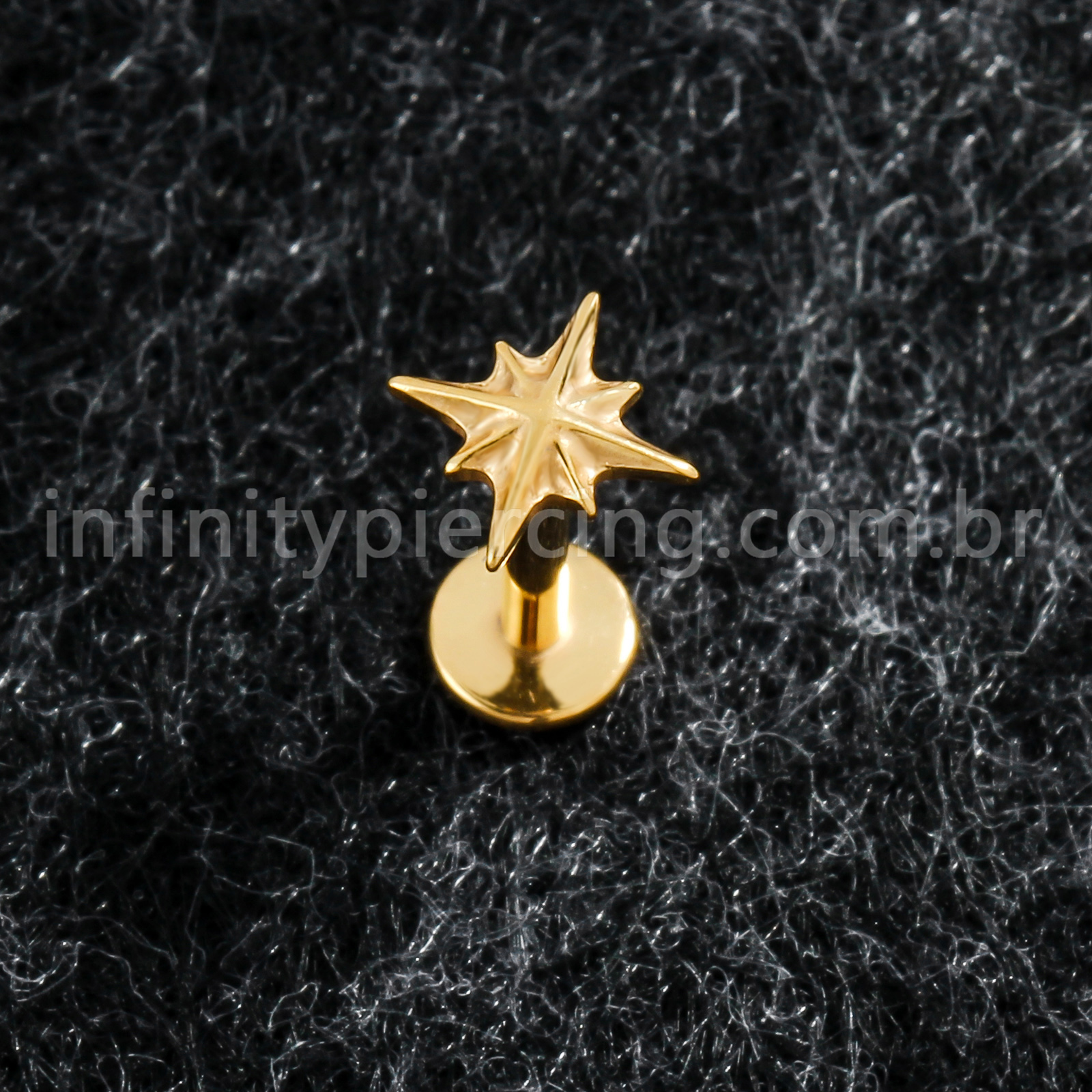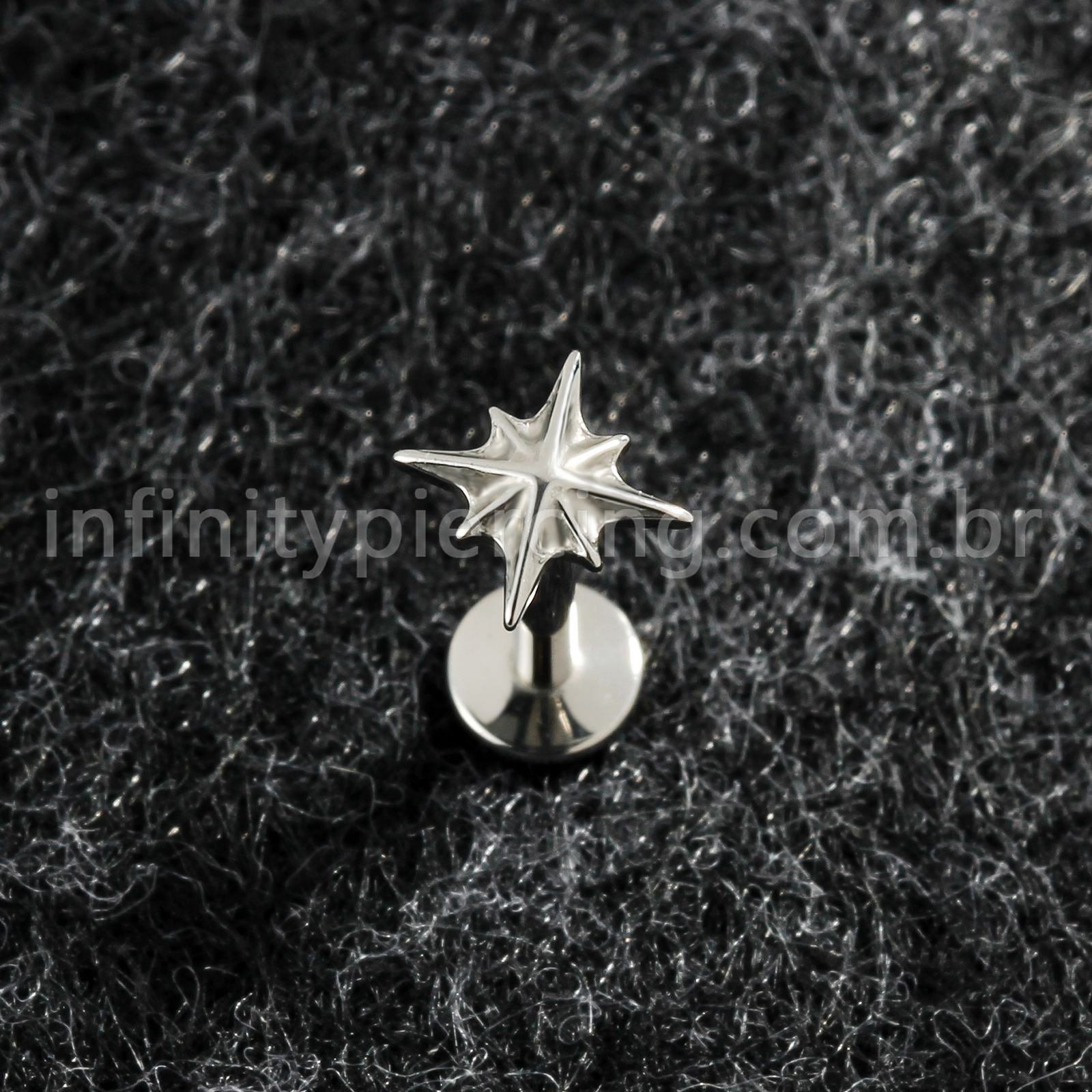 Piercing Labret Titânio Estrela Com 8 Pontas - Infinity Piercing