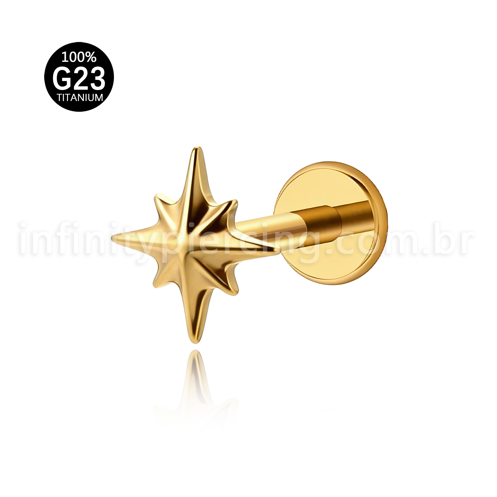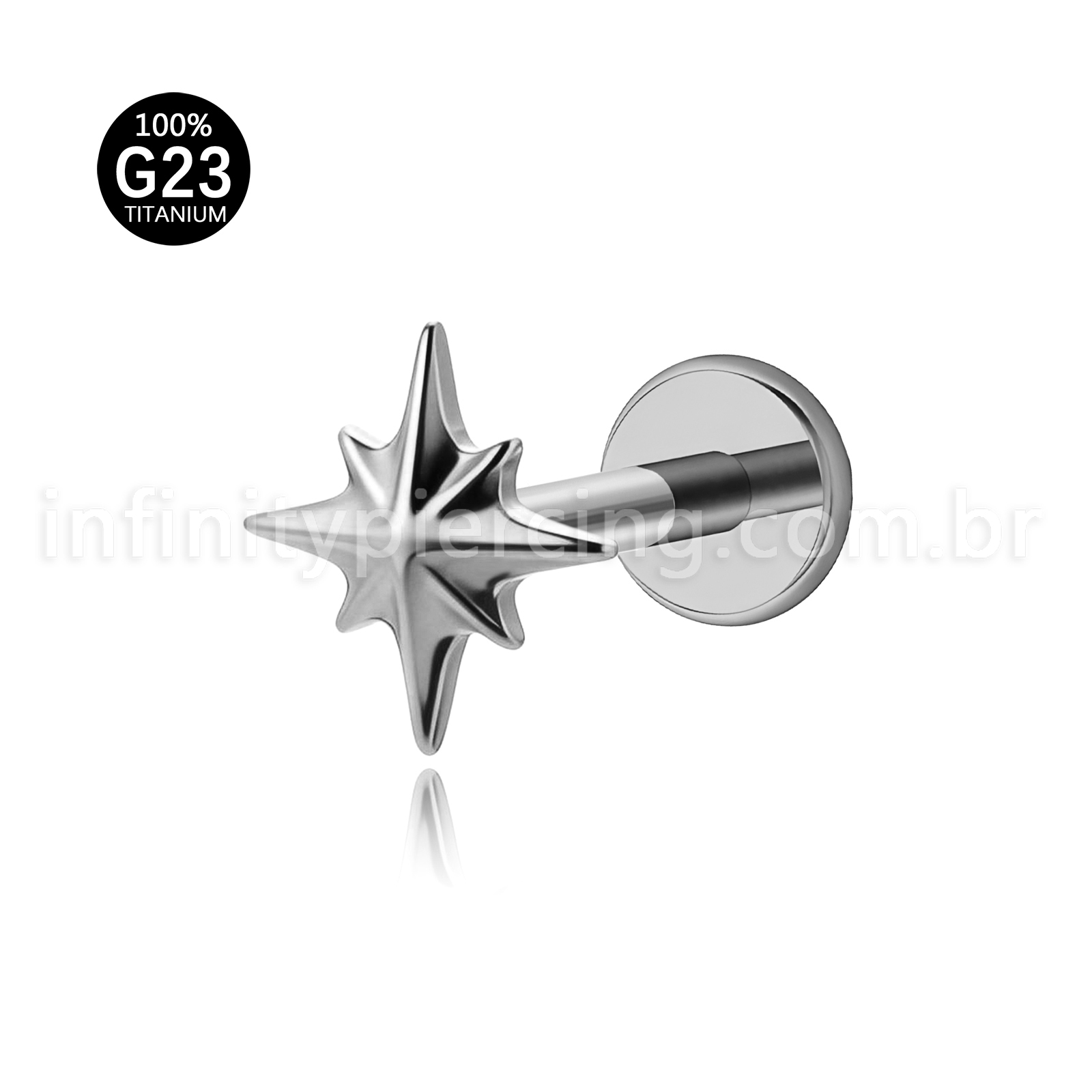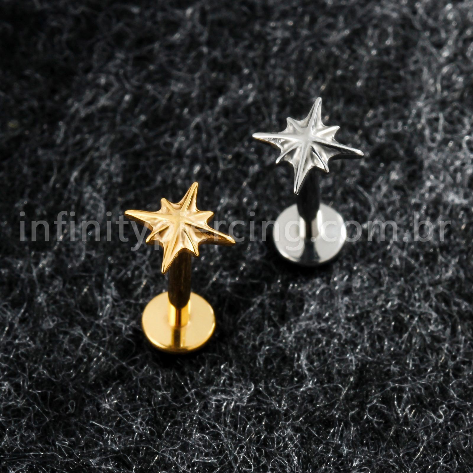 Piercing Labret Titânio Estrela Com 8 Pontas - Infinity Piercing