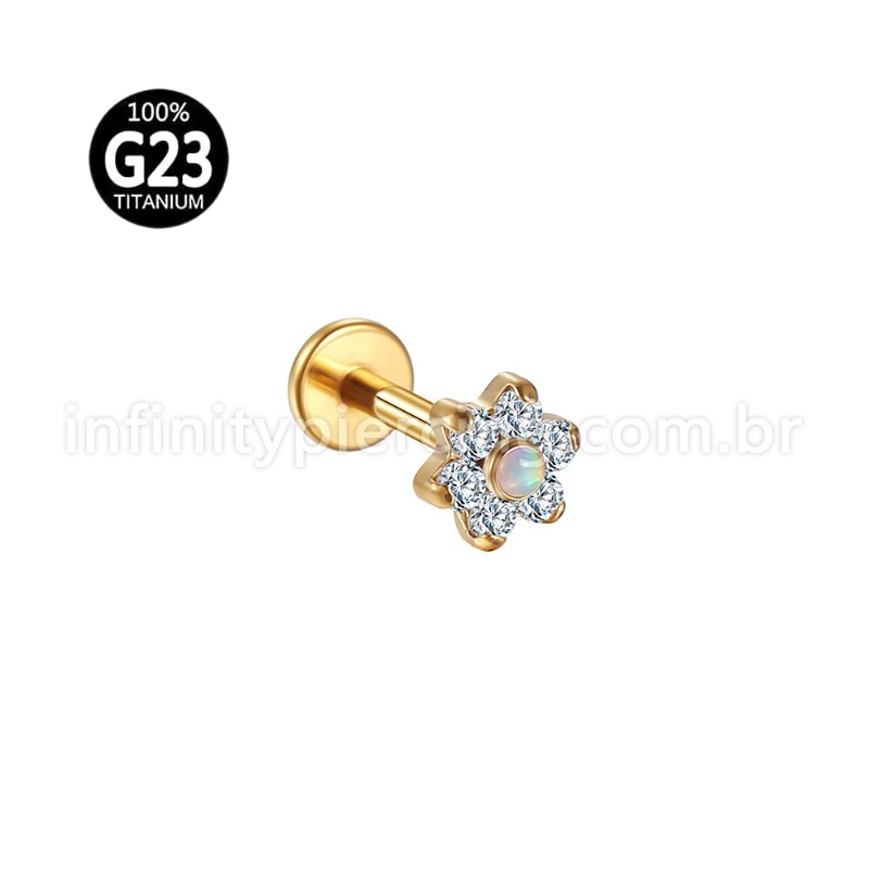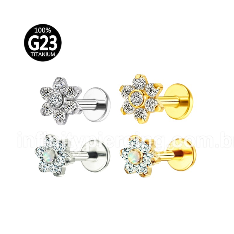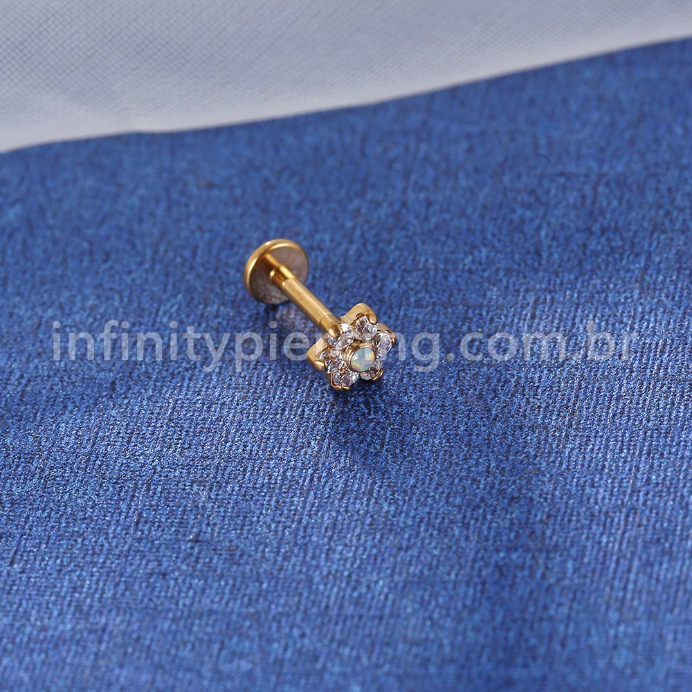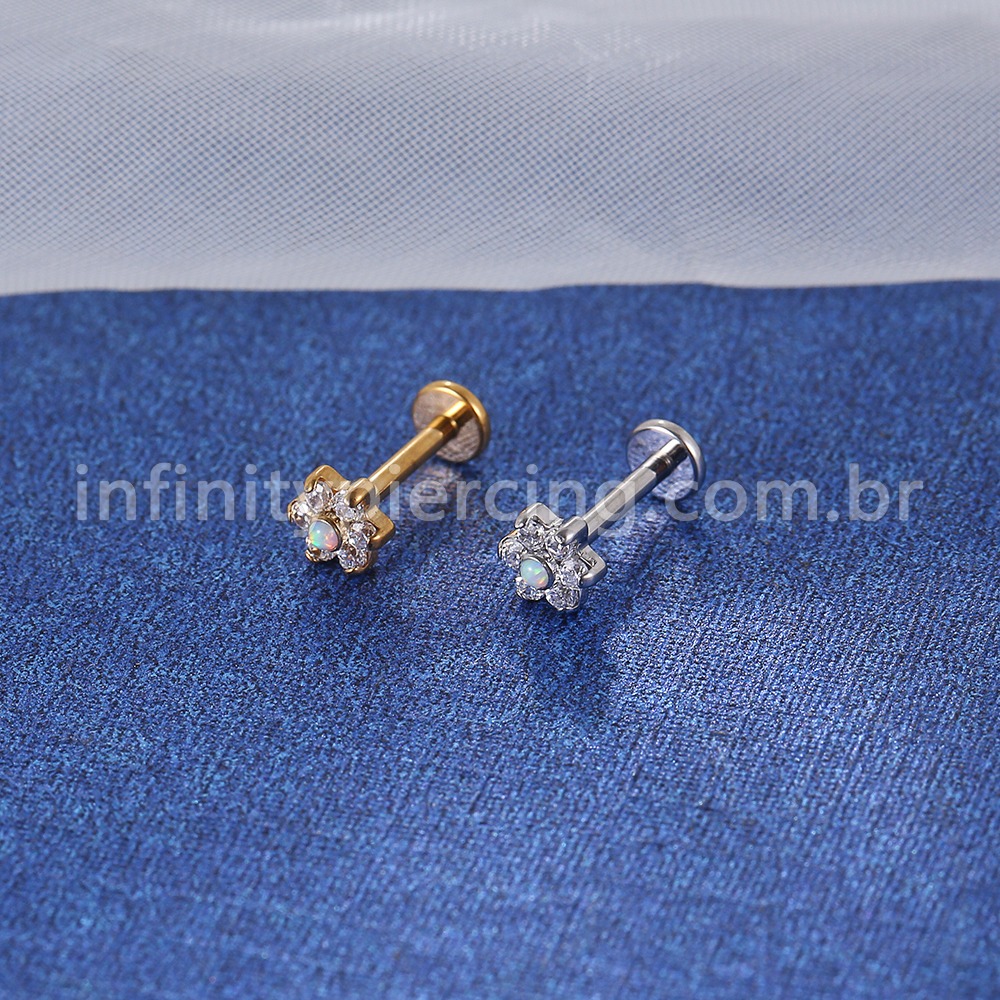 Piercing Labret Titânio Flor Zircônia - Infinity Piercing